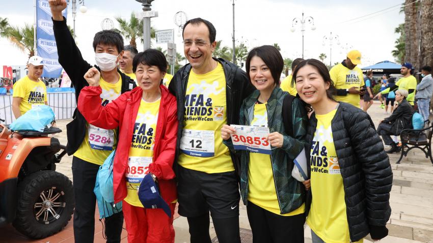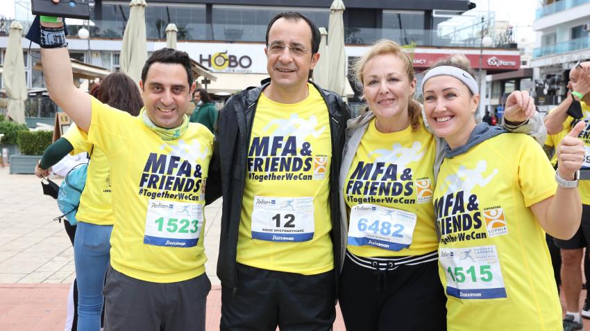 Ο Υπουργός Εξωτερικών Νίκος Χριστοδουλίδης έτρεξε με μια ομάδα 68 ατόμων με την επωνυμία «Υπουργείο Εξωτερικών και Φίλοι» από 23 συνολικά χώρες και αποτελείτο από μέλη του προσωπικού του Υπουργείου, ξένους Πρέσβεις που ήρθαν από την Ελλάδα, Διπλωμάτες και μέλη του προσωπικού ξένων Διπλωματικών Αποστολών στην Κύπρο.