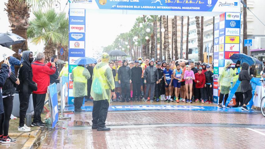 Υπό βροχόπτωση, που σε ορισμένες περιπτώσεις ήταν έντονη, επτάμισι περίπου χιλιάδες άτομα από 72 χώρες, μεταξύ των οποίων Υπουργοί και πρέσβεις ξένων χωρών, τηρώντας όλα τα πρωτόκολλα για την πανδημία του κορωνοϊού, συμμετείχαν την Κυριακή στον 4ο Radisson Blu Διεθνή Μαραθώνιο Λάρνακας που πραγματοποιήθηκε στην παραλία των Φοινικούδων.