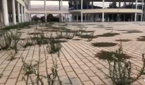 Η μπογιά στους τοίχους έχει ξεφυλλίσει και η αυλή έχει γεμίσει αγριόχορτα, ενώ τα πλείστα παγκάκια είναι κατεστραμμένα.
