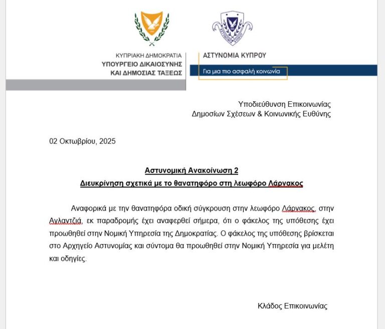 Με ανακοίνωση, η Αστυνομία αποδίδει τις δηλώσεις σε «παραδρομή» και διευκρινίζει ότι «ο φάκελος της υπόθεσης βρίσκεται στο Αρχηγείο Αστυνομίας και σύντομα θα προωθηθεί στην Νομική Υπηρεσία για μελέτη και οδηγίες.»