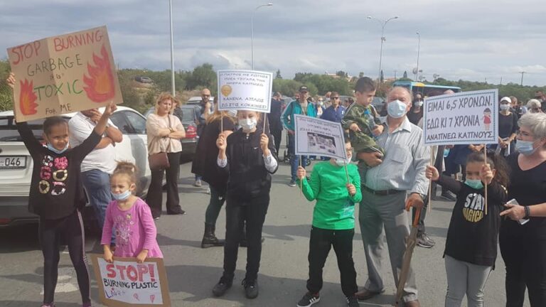 Με τυμπανοκρουσίες και φορώντας μάσκες συμβολικά οι κάτοικοι της περιοχής, διαμαρτυρήθηκαν για τις παράνομες καύσεις σκουπιδιών που πραγματοποιούνται τα τελευταία χρόνια, με αποτέλεσμα την εισπνοή επικίνδυνων για την υγεία αερίων. Στην εκδήλωση έδωσε το «παρών» ο Δήμαρχος Γιάννος Καρούσος, καθώς και μέλη του Δημοτικού Συμβουλίου, ο βουλευτής ΑΚΕΛ Αμμοχώστου Χριστάκης Τζιοβάννης και ο Επαρχιακός Γραμματέας του Κινήματος Οικολόγων Μιχάλης Παράσχος, εκφράζοντας τη στήριξή τους.