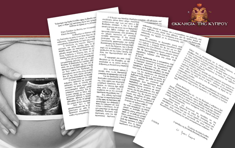 Κάθετα αντίθετη με την αποποινικοποίηση των αμβλώσεων και τη σχετική πρόταση νόμου που κατέθεσαν τα κοινοβουλευτικά κόμματα, δηλώνει η Εκκλησία της Κύπρου. Σε υπόμνημα που απέστειλε η Ιερά Σύνοδος στα μέλη της Κοινοβουλευτικής Επιτροπής Ανθρωπίνων Δικαιωμάτων. εξηγεί οτι “ο κύριος λόγος για τον οποίο η Εκκλησία επιμένει στη θέση οτι ο άνθρωπος υφισταται ως ψυχοσωματική οντότητα απο τη στιγμή της σύλληψης, είναι το γεγονός οτι χωρίς τη χρήση άλλων γεννητικών κυττάρων και χωρίς καμία άλλη εξωτερική παρέμβαση, το ζυγωτό μπορεί να εξελιχθεί σταδιακά σε πλήρη ανθρώπινο οργανισμό.”