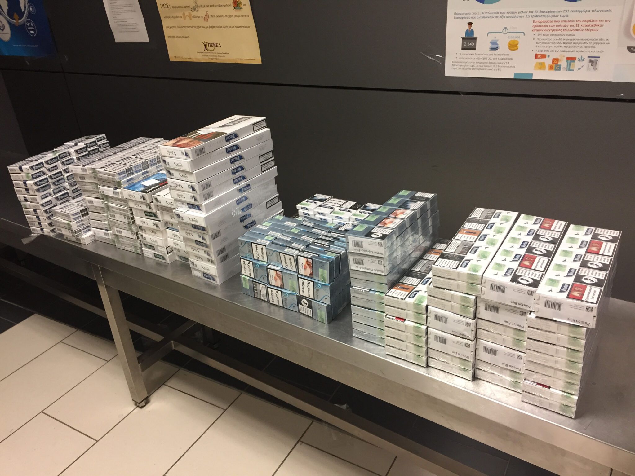Το Τμήμα Τελωνείων εντόπισε και κατάσχεσε 58 κούτες αφορολόγητα τσιγάρα στο αεροδρόμιο Λάρνακας και εισέπραξε 2.900 ευρώ μετά από εξώδικο συμβιβασμό από τον επιβάτη που τα εισήγαγε. Σύμφωνα με Δελτίο Τύπου του Τμήματος Τελωνείων στις 12 Νοεμβρίου 2018 ανευρέθηκε ποσότητα αδασμοαφορολόγητων τσιγάρων, η οποία ήταν επιμελώς κρυμμένη, πίσω από πάγκο τουριστικής εταιρείας στο χώρο αφίξεων του Αεροδρομίου Λάρνακας. Συνολικά ανευρέθηκαν 58 κούτες (58Χ200 τεμάχια) τσιγάρα μάρκας CREDO και MARLBORO τα οποία δεν φέρουν τη σήμανση για το βλαβερό του καπνίσματος, ένδειξη ότι είναι αφορολόγητα. Από μαρτυρία που εξασφάλισε το Τμήμα Τελωνείων από υπάλληλο ταξιδιωτικού γραφείου διαπιστώθηκε ότι τα τσιγάρα τα μετέφερε και τα έκρυψε εκεί όπου ανεβρέθηκαν, επιβάτης ρωσικής καταγωγής που αφίχθηκε από Μόσχα με την πτήση FV5701 στις 6:30 το πρωί της 11ης Νοεμβρίου 2018.
