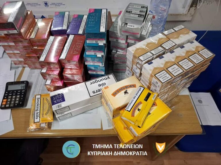 Σύμφωνα με το Τμήμα Τελωνείων εντοπίστηκαν και κατασχέθηκαν 12 κούτες των 200 τσιγάρων η κάθε μία, 55 κούτες θερμαινόμενων τσιγάρων και 1 κιλό και 125 γραμμάρια καπνού για στριφτό τσιγάρο, τα οποία ανήκαν στον 72χρονο οδηγό και 7 κούτες των 200 τσιγάρων η κάθε μία, 10 κούτες θερμαινόμενων τσιγάρων, 2 κιλά και 450 γραμμάρια καπνού για στριφτό τσιγάρο και 10 τεμάχια πούρων, τα οποία ανήκαν στον 58χρονο συνοδηγό.
