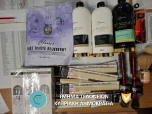 Κατά τον έλεγχο του οχήματος εντοπίστηκαν στον αποθηκευτικό χώρο και στα πισινά καθίσματα τρία μεγάλα χαρτοκιβώτια, τα οποία περιείχαν 251 τεμάχια διαφόρων ειδών κομμωτικής, τα οποία θα χρησιμοποιούνταν για εμπορικό σκοπό.
