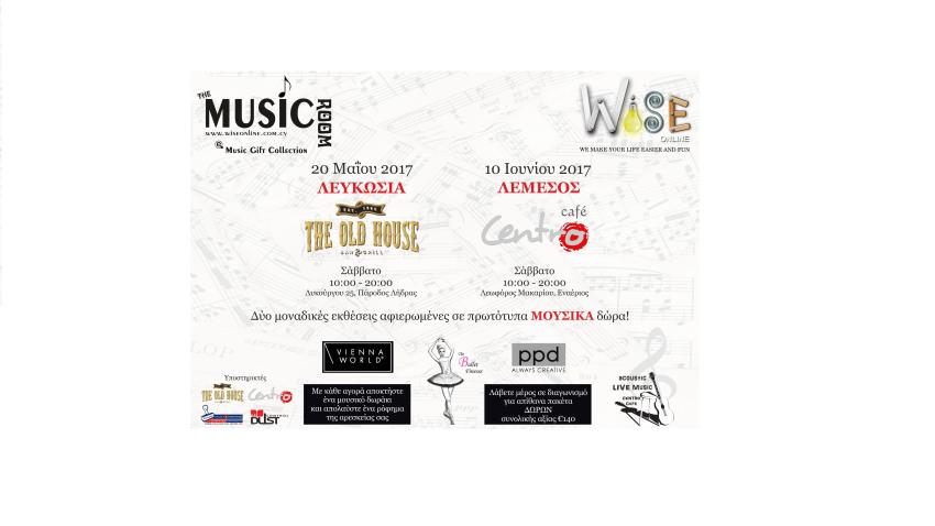 Το ηλεκτρονικό κατάστημα www.wiseonline.com.cy διοργανώνει δύο ολοήμερες εκδηλώσεις, σε Λευκωσία και Λεμεσό, και σας προσκαλεί όλους να έρθετε να γνωρίσετε από κοντά τα ΝΕΑ, εντυπωσιακά και επιλεγμένα προϊόντα του «The Music Room»!