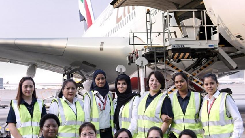 Ο Όμιλος Emirates απασχολεί γυναίκες από περισσότερες από 150 εθνικότητες. Σχεδόν 1.150 γυναίκες από τα Ηνωμένα Αραβικά Εμιράτα εργάζονται σε διάφορα τμήματα του Ομίλου, κατέχοντας μεταξύ άλλων και ανώτερες διοικητικές και εκτελεστικές θέσεις. Οι γυναίκες αποτελούν το 40% του εργατικού δυναμικού της Emirates, με την πλειοψηφία αυτών να στελεχώνουν το πλήρωμα καμπίνας. Πάνω από το 20% των διοικητικών θέσεων στην Emirates ανήκουν σε γυναίκες.