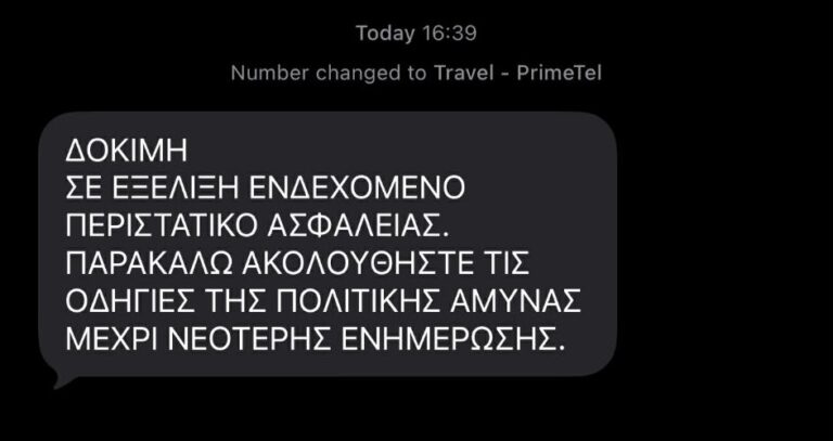 ΔΙΑΒΑΣΤΕ ΕΠΙΣΗΣ: Στέλνουν νέο δοκιμαστικό SMS… ανά επαρχία: Οι ώρες, η σειρά αποστολής μηνυμάτων κι η διεύθυνση