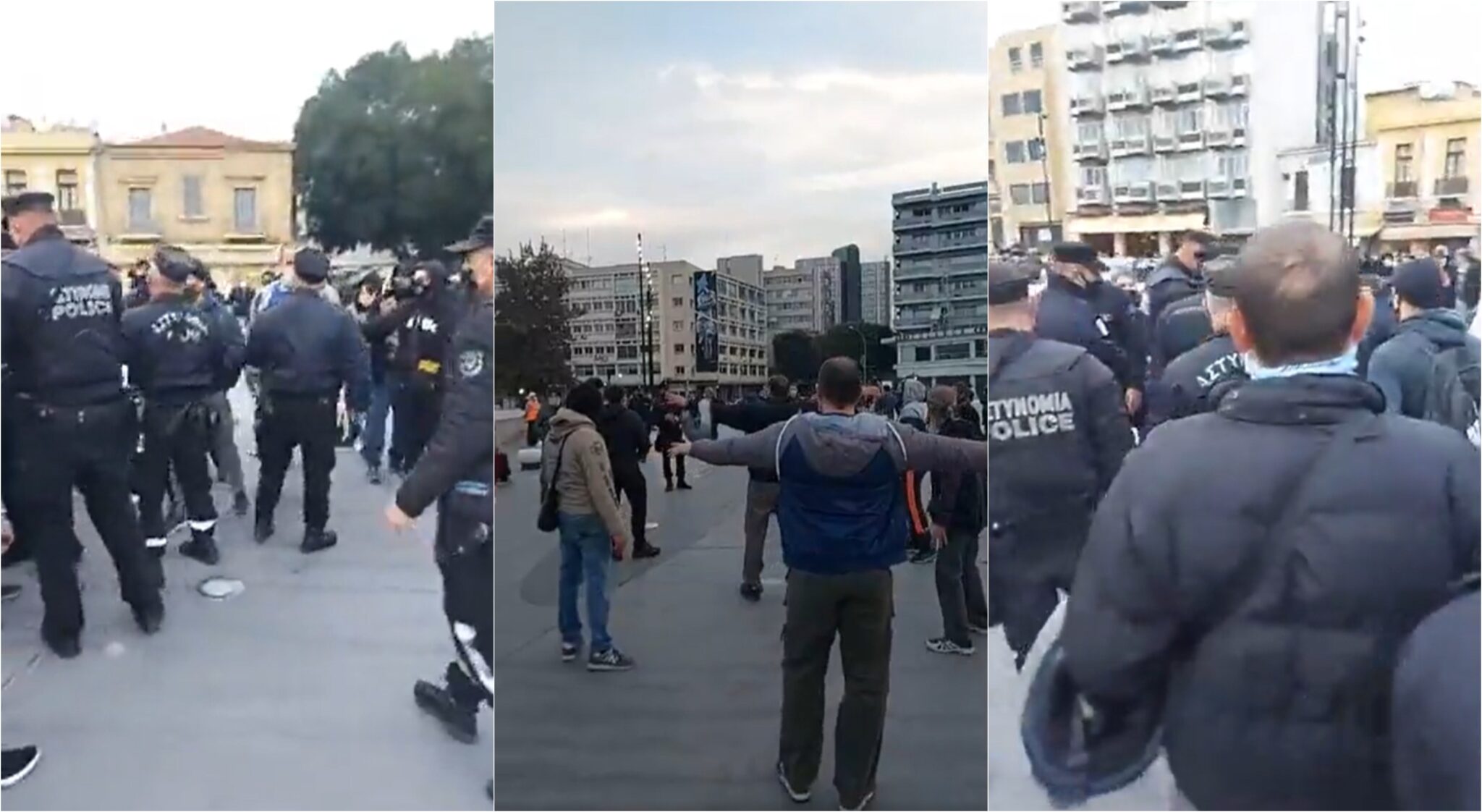 Η διαμαρτυρία από ομάδα ατόμων “σημαδεύτηκε” από μικροεπεισόδια, όταν στο σημείο έφτασαν μέλη της Αστυνομίας για να ελέγξουν την κατάσταση καθώς οι διαμαρτυρίες/εκδηλώσεις απαγορεύονται σύμφωνα με το σχετικό διάταγμα του Υπουργείου Υγείας.