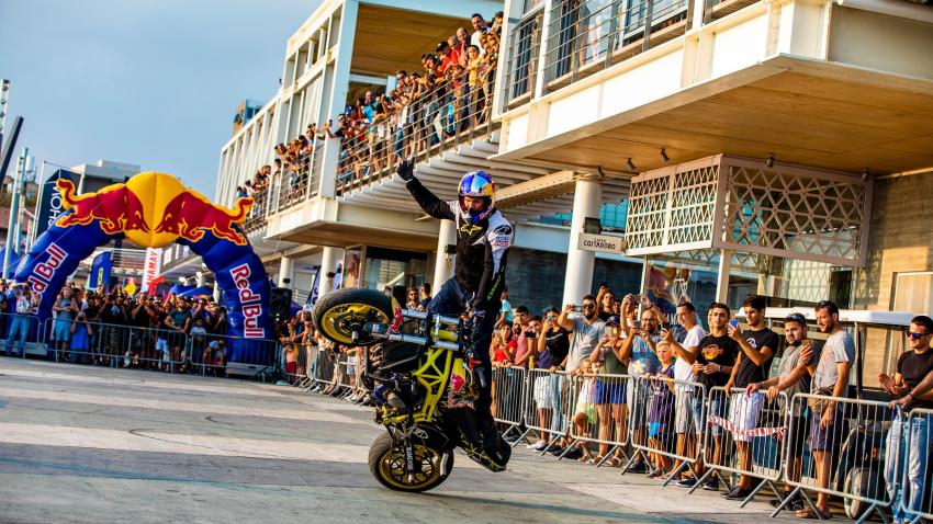 Τα είδαν… όλα όσοι βρέθηκαν το τριήμερο 14-16 Σεπτεμβρίου στο Παλιό Λιμάνι της Λεμεσού. Ο Aras Gibieza παρουσίασε ένα θέαμα που έκοψε την ανάσα και αποτέλεσε την ατραξιόν του 2ο Limassol Motor Show & Motion. Χιλιάδες επισκέπτες στριμώχτηκαν στα κάγκελα και στο άνω… διάζωμα, για να δουν το Λιθουανό stunt rider της Red Bull να κάνει κατακόρυφο πάνω στη σέλα με τη μοτοσυκλέτα εν κινήσει, να κάνει πιρουέτες στη μια ρόδα, να οδηγεί καθισμένος ανάποδα στο τιμόνι και να… ζωγραφίζει οχταράκια λίγα εκατοστά από τα πόδια των άφωνων θεατών.