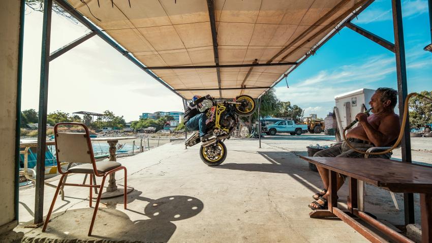 Πέρα από τις εμφανίσεις στο Παλιό Λιμάνι ο Λιθουανός stunt rider βρέθηκε σε διάφορα σημεία αναφοράς της Λεμεσού, όπου φωτογραφήθηκε, εμπλουτίζοντας το portofolio του με εικόνες που θα ταξιδέψουν την Κύπρου σε ολόκληρο τον κόσμο. Μαζί με τη θηριώδη μηχανή έδωσε πνοή σε ένα εγκαταλελειμμένο εργοστάσιο, αναστάτωσε την ηρεμία στο καρνάγιο της Λεμεσού και έκανε ένα γρήγορο πέρασμα από την περιοχή του Lady’s Mile.