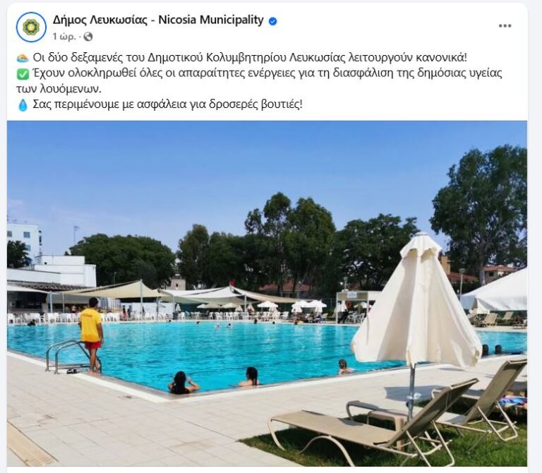 Διαβάστε επίσης: Έκλεισε εκτάκτως πισίνα στο Κολυμβητήριο Λευκωσίας, αυτός είναι ο λόγος