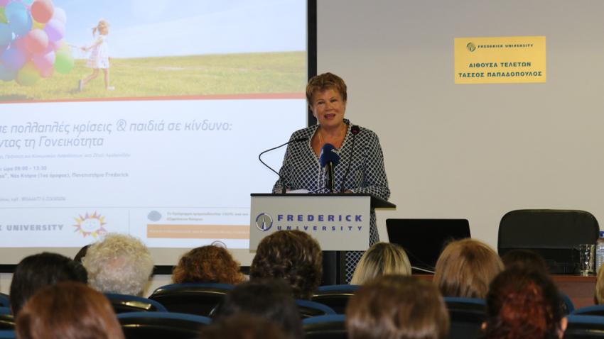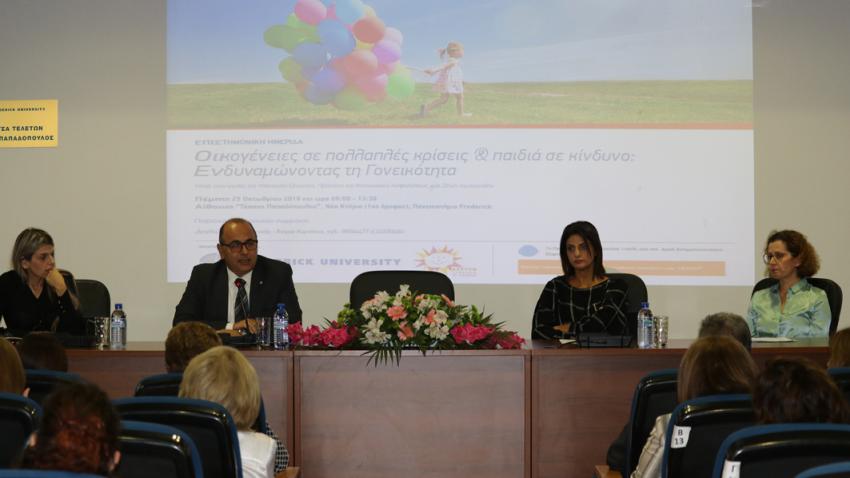 Πραγματοποιήθηκε με μεγάλη επιτυχία στο Πανεπιστήμιο Frederick η Επιστημονική Ημερίδα με τίτλο «Οικογένειες σε πολλαπλές κρίσεις & παιδιά σε κίνδυνο: ενδυναμώνοντας τη γονεϊκότητα». Η εκδήλωση τελούσε υπό την αιγίδα της Υπουργού Εργασία, Πρόνοιας και Κοινωνικών Ασφαλίσεων, κας Ζέτας Αιμιλιανίδου.