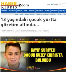 Σε επιβεβαίωση της είδησης που μετέδωσαν πριν μερική ώρα τ/κ ΜΜΕ ότι ο 13χρονος που είχε εξαφανιστεί στις 6 Αυγούστου από δομή ανηλίκων στη Λευκωσία, βρίσκεται στα κατεχόμενα, προχώρησε η Αστυνομία Κύπρου.