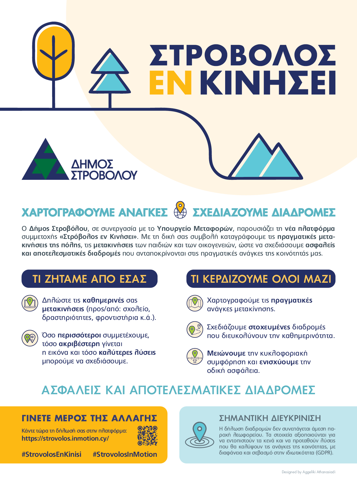 Το κοινό καλείται να συμπληρώσει τις καθημερινές τους μετακινήσεις στη σελίδα https://strovolos.azurewebsites.net (μετακινήσεις παιδιών από και προς το σχολείο, δραστηριότητες, φροντιστήρια κ.ά).