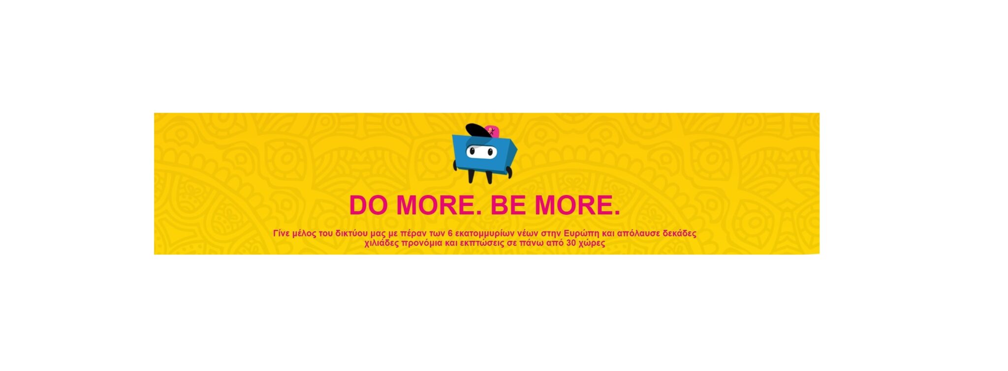 Ζήσε τη ζωή σου όπως εσύ θες, με τους δικούς σου κανόνες. Επωφελήσου των προνομίων της κάρτας νέων και απόλαυσε κάθε στιγμή στο μάξιμουμ.