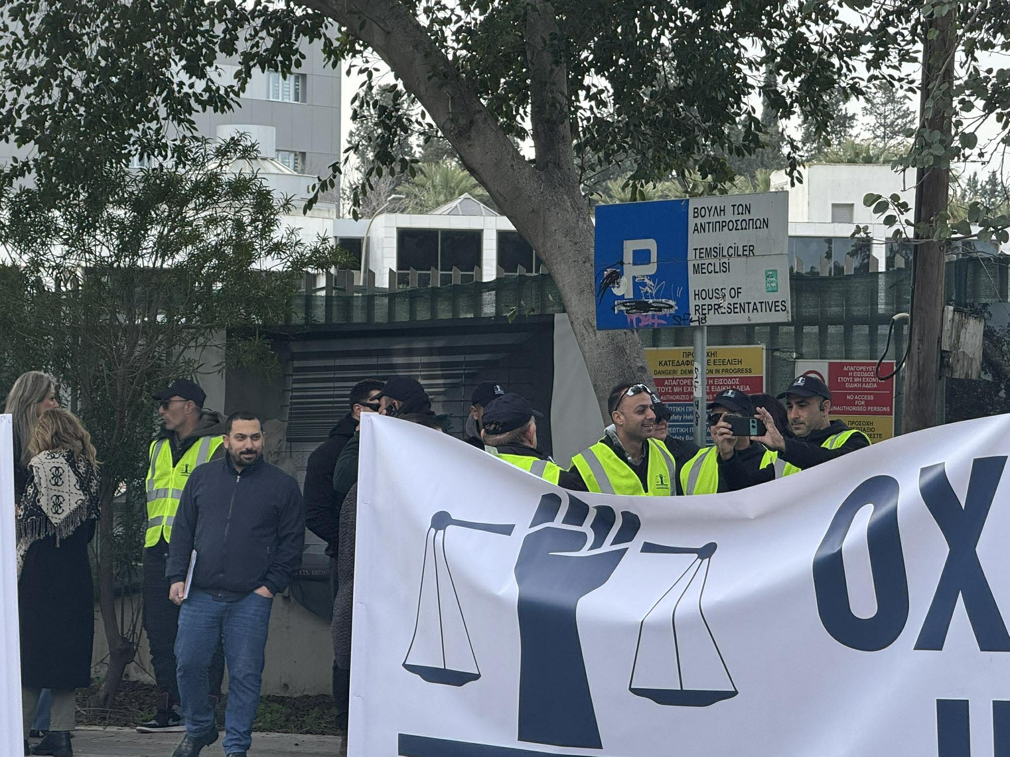 Έξω από τη βουλή βρίσκονται οι αστυνομικοί της Συντεχνίας «Ισότητας», που διαμαρτύρονται