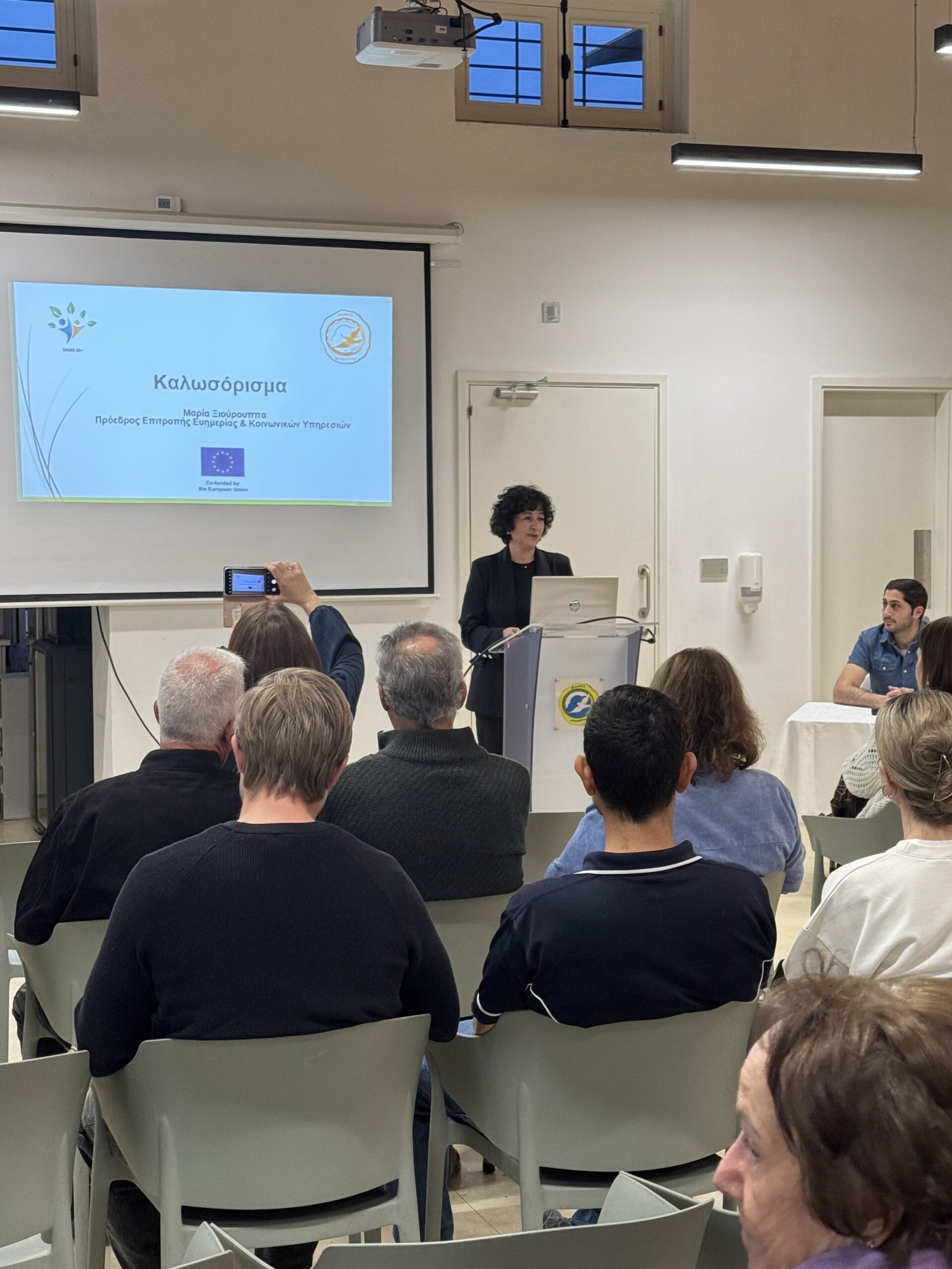 Την εκδήλωση προλόγισε η Δημοτική Σύμβουλος και Πρόεδρος της Επιτροπής Ευημερίας του Δήμου Αραδίππου, κα. Μαρία Ξιουρούππα, η οποία καλωσόρισε τους παρευρισκόμενους και παρουσίασε το έργο Sages55+. Η κα. Ξιουρούππα τόνισε τη σημασία της συμμετοχής των ατόμων 55+ σε εκπαιδευτικές και κοινωνικές δραστηριότητες, επισημαίνοντας ότι το έργο προωθεί τη διαγενεακή ανταλλαγή γνώσης και εμπειριών, ενισχύοντας την αυτοεκτίμηση, την κοινωνική συμμετοχή και την ευεξία. Παράλληλα, παρουσίασε τα σημαντικά αποτελέσματα του έργου, όπως τον Οδηγό Εκπαιδευτικής Συμβουλευτικής και την Εργαλειοθήκη με χρήσιμα ερωτηματολόγια για συμβούλους και μαθητευόμενους.