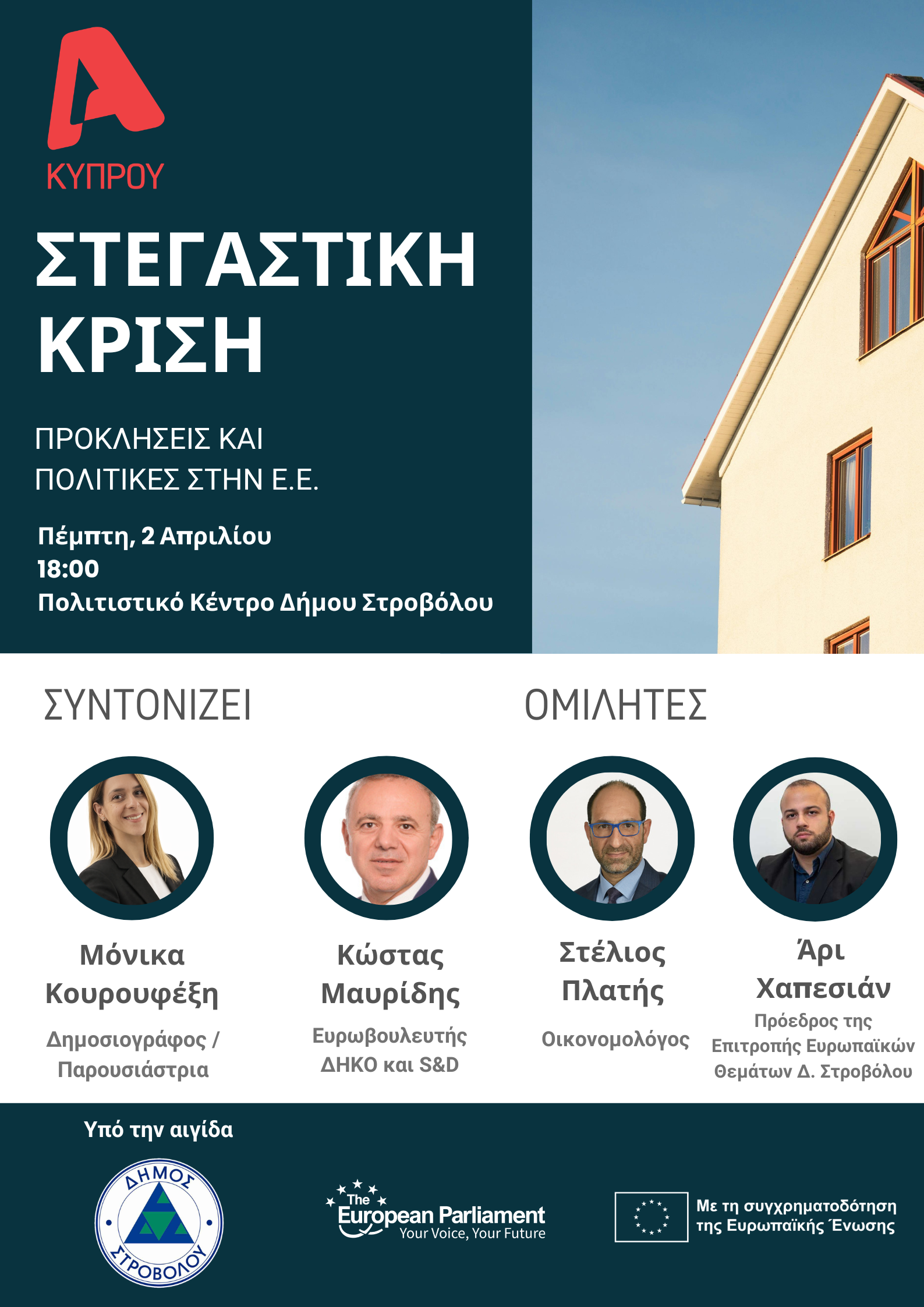 Η στεγαστική κρίση, ένα ζήτημα που επηρεάζει ολοένα και περισσότερο τους πολίτες σε ολόκληρη την Ευρώπη, βρίσκεται στο επίκεντρο υβριδικής ημερίδας που συνδιοργανώνει ο ALPHA Κύπρου υπό την αιγίδα του Δήμου Στροβόλου, με τίτλο «Η στεγαστική κρίση στην Ευρώπη: Προκλήσεις και πολιτικές της ΕΕ για προσιτή στέγαση».