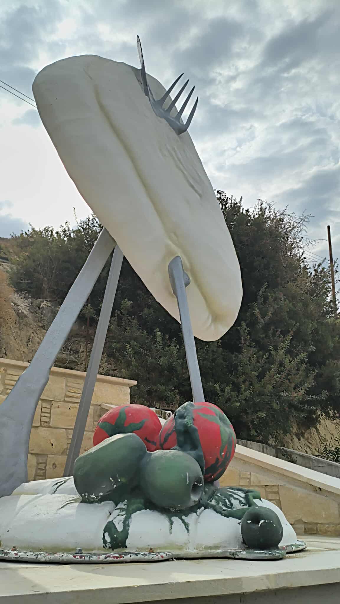Viral έχει γίνει το γλυπτό του χαλλουμιού στο Πισσούρι, ένα γλυπτό από plexiglass που αναπαριστά ένα χαλλούμι, μαχαιροπίρουνα, τρεις ελιές και δύο ντομάτες.