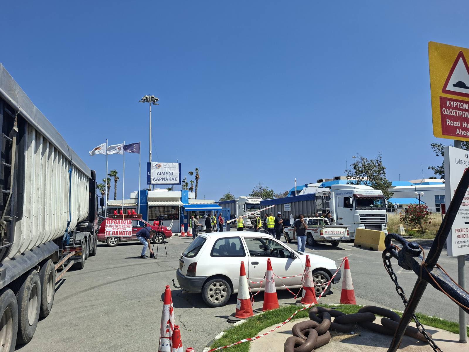 Έκλεισαν και το λιμάνι Λάρνακας οι κτηνοτρόφοι από τις 12:30 το μεσημέρι, με την ένταση να βρίσκεται στα ύψη. Τη Ριζοελιά νωρίτερα επισκέφθηκε εκτάκτως και ο Υπουργός Δικαιοσύνης, Κωνσταντίνος Φυτιρής.