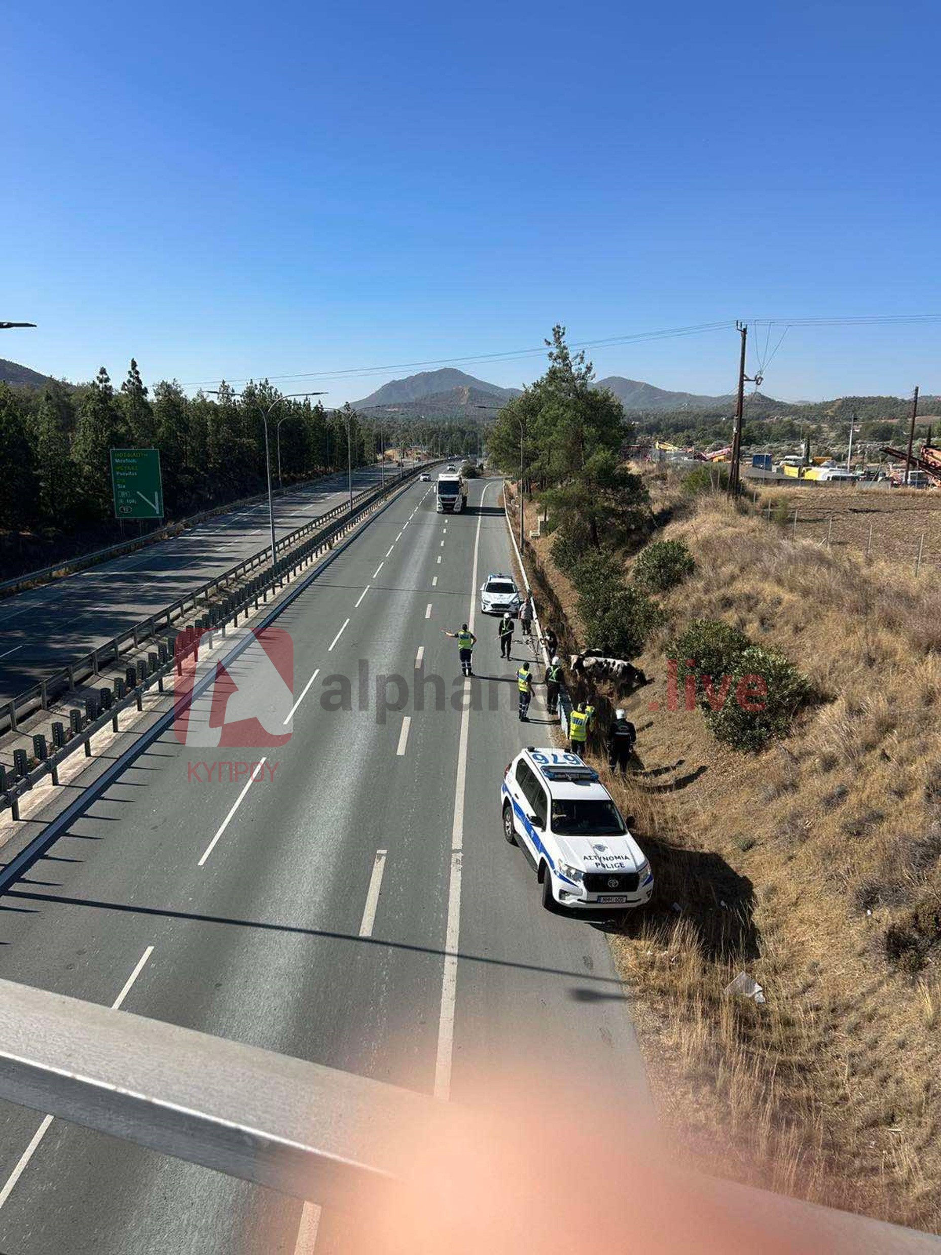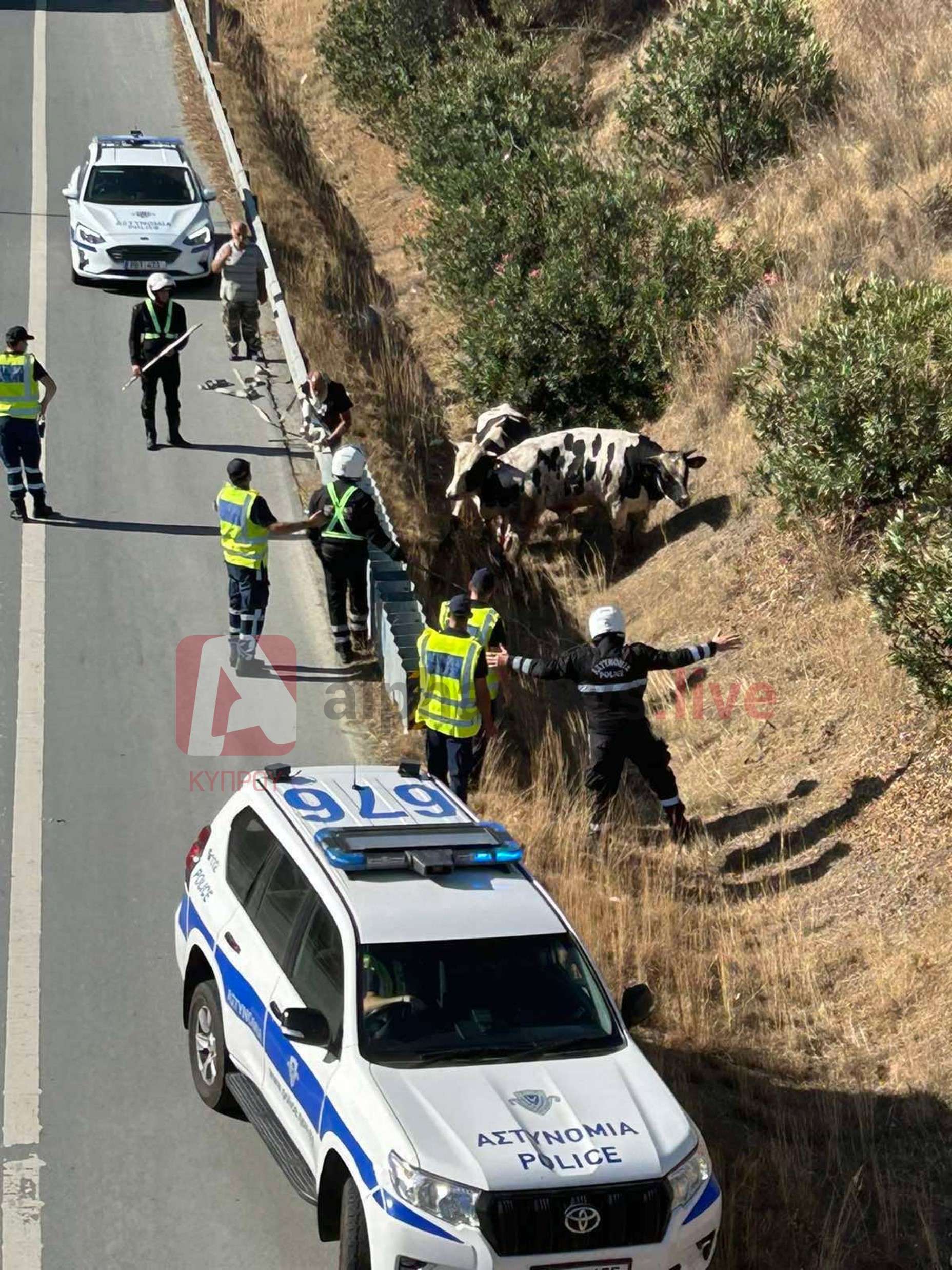 Σε συναγερμό έβαλαν τις Αρχές δύο αγελάδες που βγήκαν… βόλτα στον αυτοκινητόδρομο Λεμεσού-Λευκωσίας, στο ύψος της περιοχής Μοσφιλωτής, με την Αστυνομία να επιχειρεί να τις συγκρατήσει εκτός δρόμου.