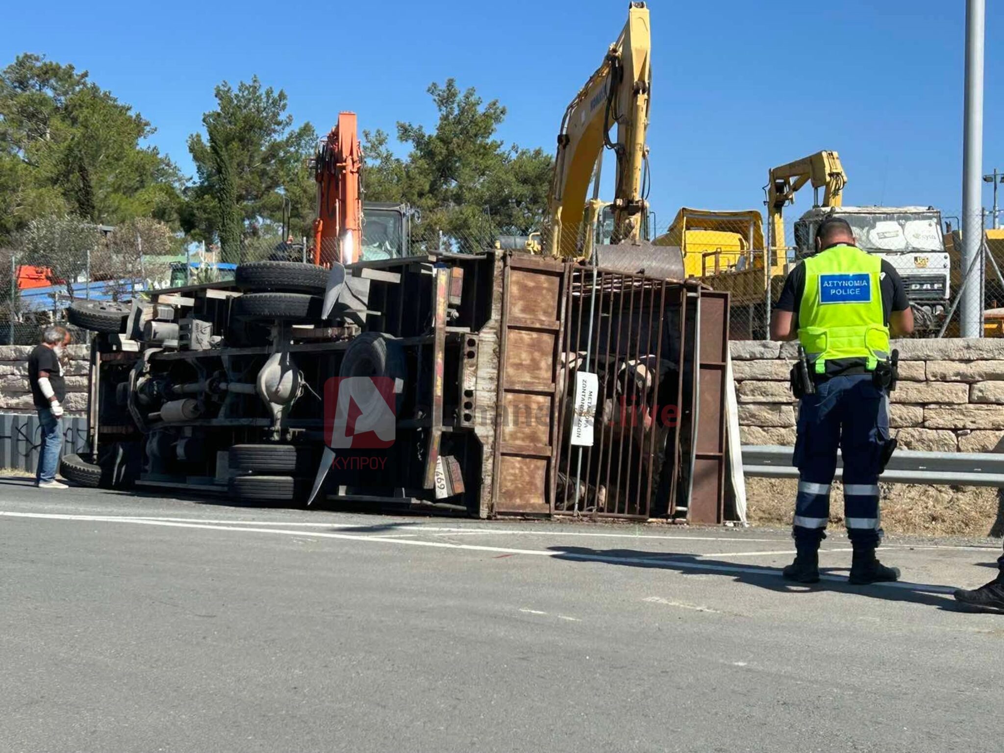 Οι δύο αγελάδες διέφυγαν από φορτηγό όχημα με το οποίο μεταφέρονταν και του οποίου ο οδηγός έχασε τον έλεγχο, με αποτέλεσμα το φορτηγό να κινηθεί και να ανατραπεί εκτός του δρόμου.