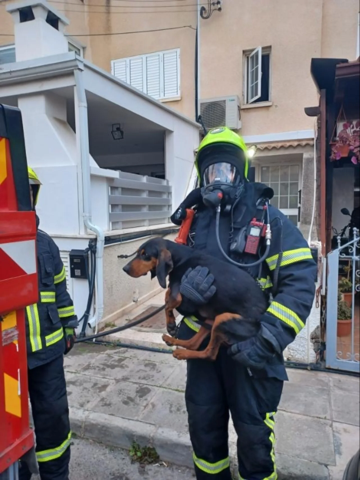 ΦΩΤΟ: Έσωσαν σκύλο από διαμέρισμα που καιγόταν στην Λευκωσία