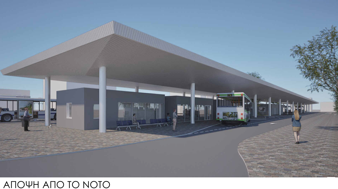 - Τμήμα Β: κτιριακές εγκαταστάσεις στις οποίες περιλαμβάνονται εκδοτήρια εισιτηρίων, γραφειακοί χώροι, αίθουσα αναμονής, κυλικείο, χώροι υγιεινής κοινού και προσωπικού και χώρος ανάπαυσης προσωπικού. Τα κτίρια θα καλύπτονται από μεταλλικό στέγαστρο εμβαδού 3100μ2. Το τεμάχιο ανάπτυξης είναι συνολικού εμβαδού 9750μ2 περίπου. Επιπρόσθετα, το έργο θα περιλαμβάνει 8 στάσεις λεωφορείων, 9 χώρους στάθμευσης λεωφορείων (καλυμμένους και μη), 7 χώρους στάθμευσης για προσωπικό, 2 χώρους στάθμευσης για ταξί και 1 χώρο στάθμευσης για ΑμεΑ, χώρο συντήρησης με 2 χώρους στάθμευσης λεωφορείων, αποθήκη και χώρο προσωρινής επιβίβασης/αποβίβασης για ταξί.