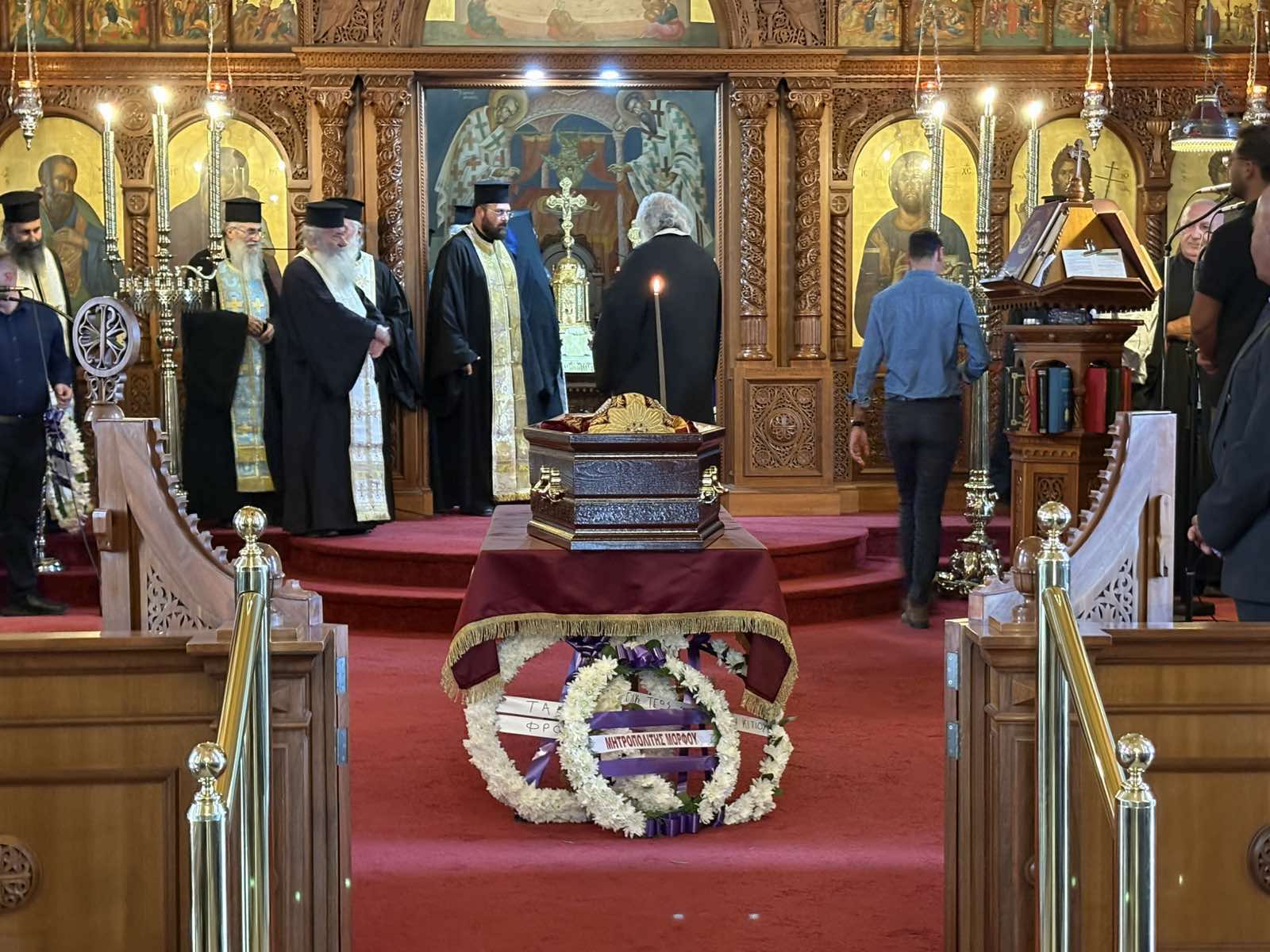 Της Εξόδιου Ακολουθίας προέστη ο Μητροπολίτης Κιτίου Νεκτάριος, συμπαραστατούμενος από τον Μητροπολίτη Ταμασού και Ορεινής Ησαϊα.