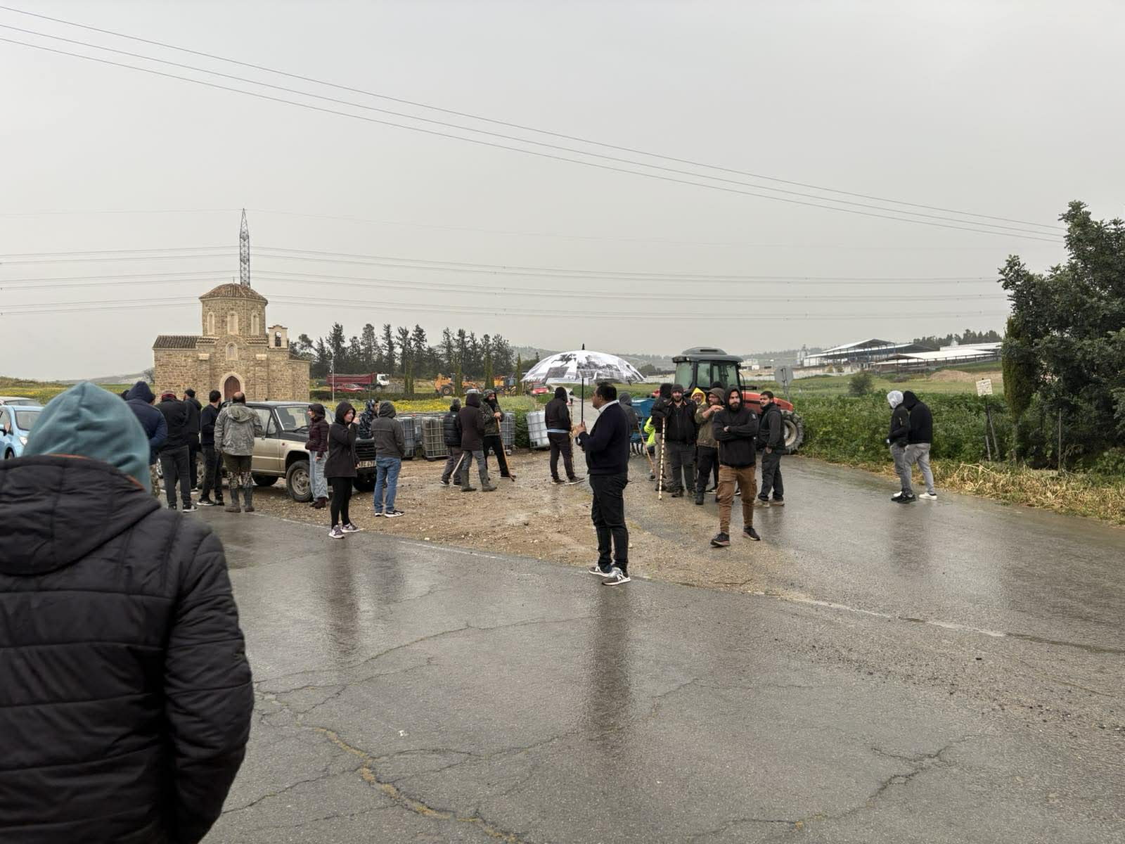 Η εκδήλωση διαμαρτυρίας είναι ειρηνική όμως με ένα τρακτέρ οι κτηνοτρόφοι έκλεισαν τον δρόμο που οδηγεί προς το σημείο ελέγχου και δεν επιτρέπουν σε κανέναν να εισέλθει ή να εξέλθει από την περιοχή.