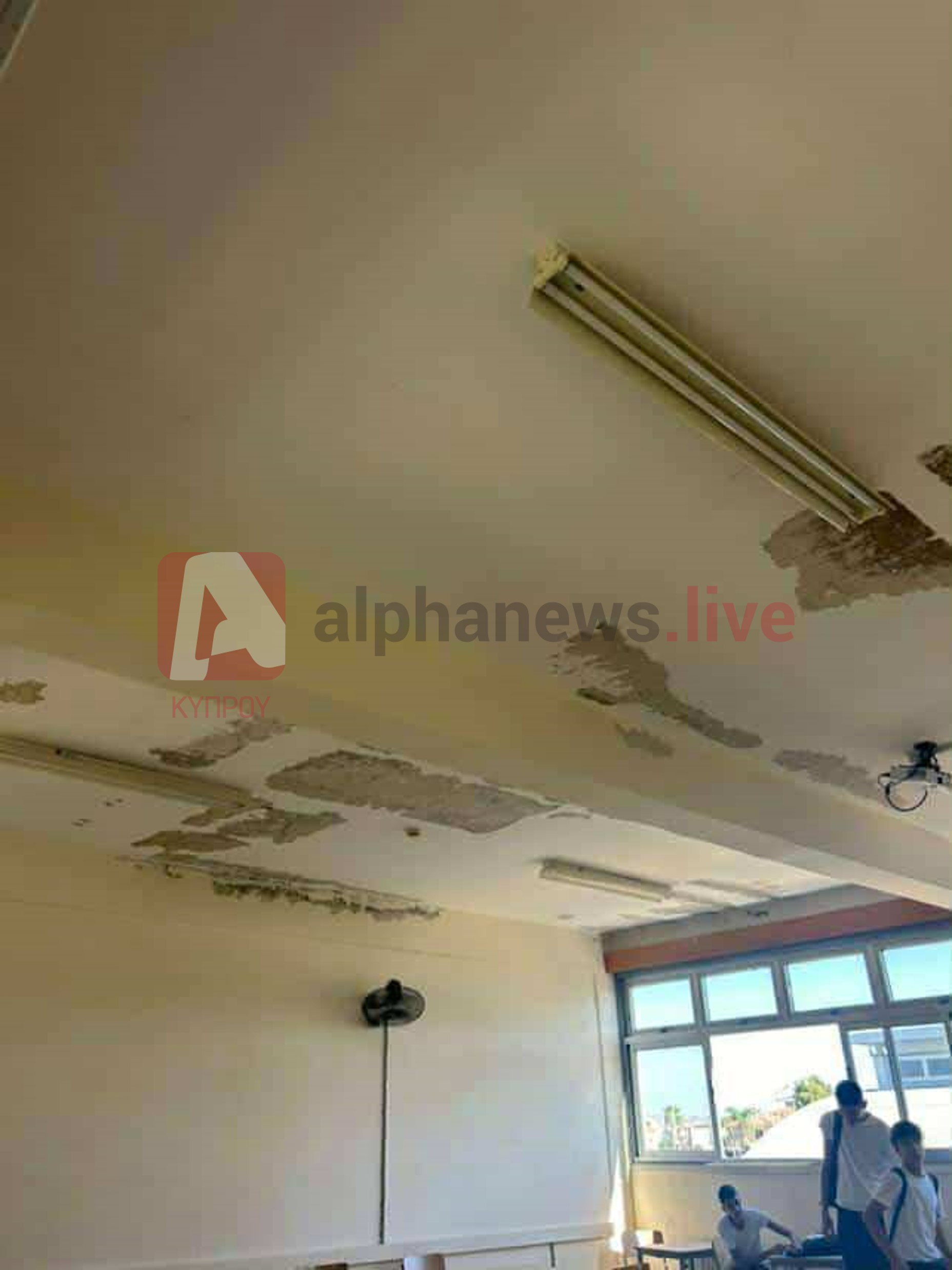 Εικόνες ντροπής στην Τεχνική Σχολής Λάρνακας όπου η βαφή στην οροφή σε αίθουσα διδασκιαλίας έχει υποστεί φθορά, με μαθητές κι εκπαιδευτικούς να βρίσκονται κάτω από τους σοβάδες.