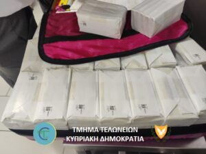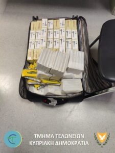 Σύμφωνα με το Τμήμα Τελωνείων, την 1η Ιουνίου λειτουργοί στο Αεροδρόμιο Λάρνακας, μετά από αξιολόγηση πληροφοριών, προχώρησαν σε έλεγχο αποσκευών δύο αναχωρούντων επιβατών, 62 και 77 χρονών αντίστοιχα, με προορισμό το Ηνωμένο Βασίλειο.