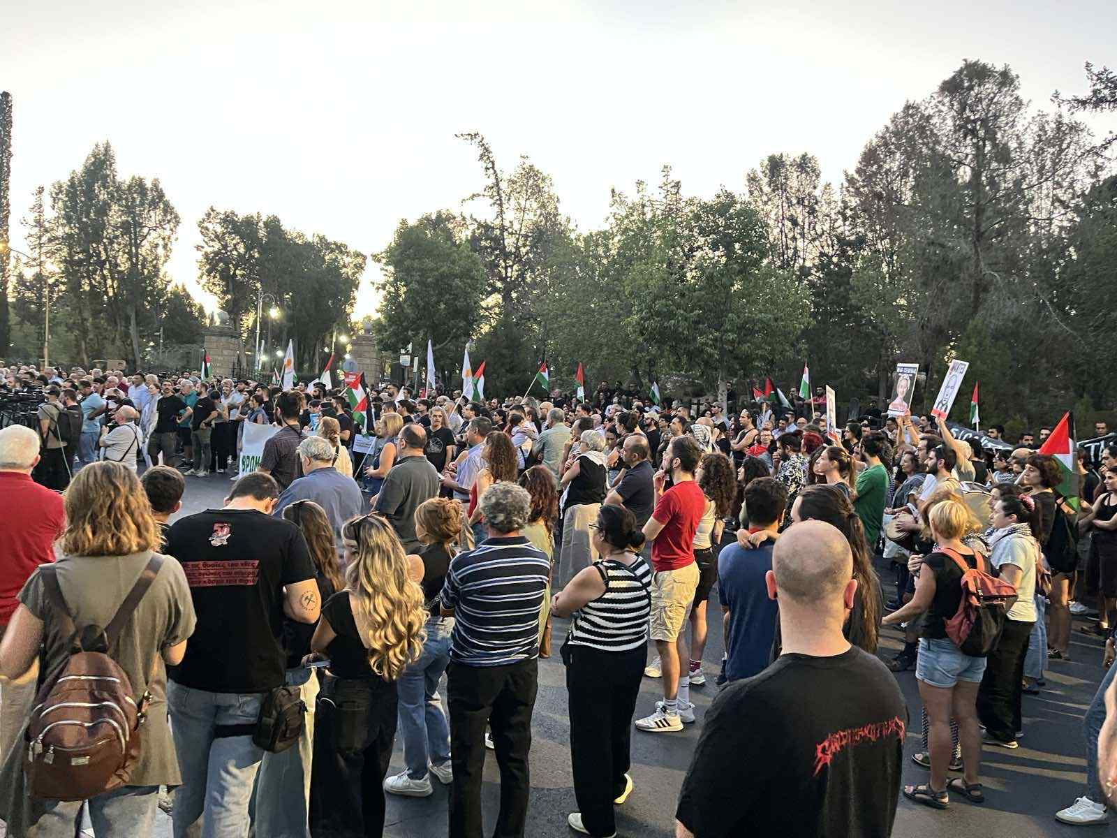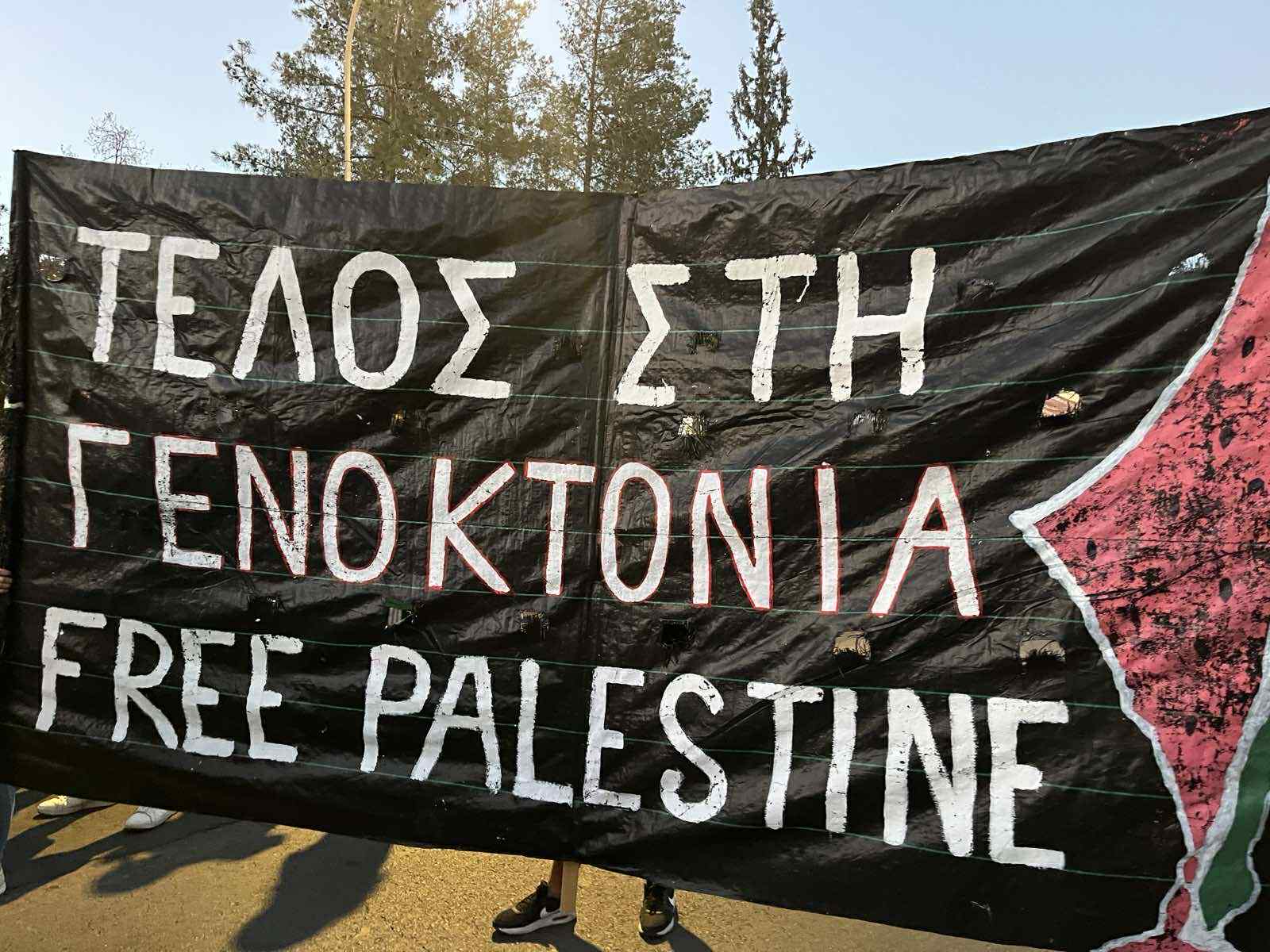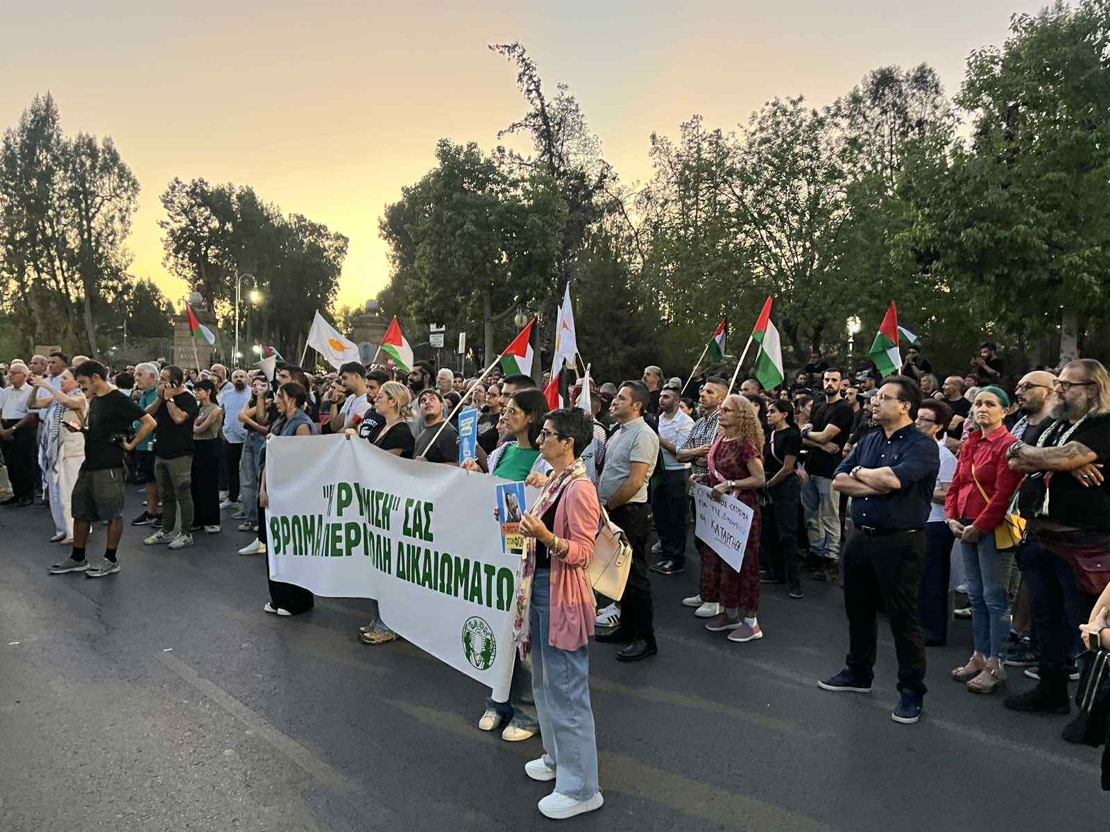Οι συμμετέχοντες στην εκδήλωση με πανό και συνθήματα διαμαρτυρήθηκαν για τα γεγονότα στη Γάζα και τη στάση της Αστυνομίας την Πέμπτη το βράδυ, ζητώντας μεταξύ άλλων να «σταματήσει η γενοκτονία στην Γάζα». Μετά την εκδήλωση ακολούθησε πορεία μέχρι την πλατεία Φανερωμένης, στην Ονασαγόρου, με τη συνοδεία της Αστυνομίας.