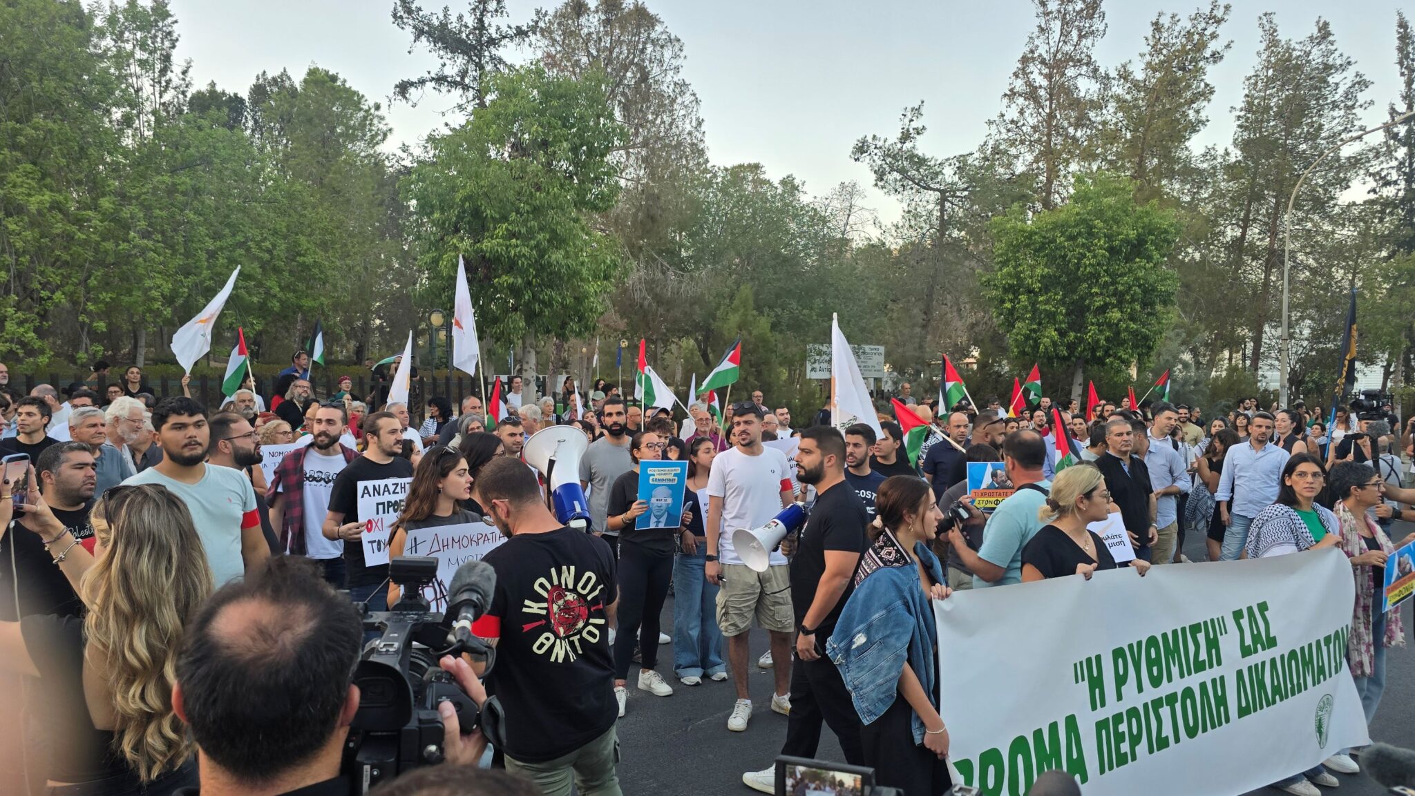 Η Κομμουνιστική Πρωτοβουλία Κύπρου καταγγέλλει σκηνές «άγριας αστυνομικής καταστολής» με χρήση σπρέι πιπεριού και ξυλοδαρμούς διαδηλωτών, μεταξύ των οποίων και δημοσιογράφος παλαιστινιακής καταγωγής. Κάνει λόγο για παρουσία αγνώστων ένστολων που έδιναν διαταγές στα αγγλικά, και συνδέει τη βίαιη επέμβαση με τις στρατηγικές συμμαχίες της Κύπρου με ΗΠΑ, ΝΑΤΟ και το Ισραήλ, τις οποίες χαρακτηρίζει «ιμπεριαλιστικές».