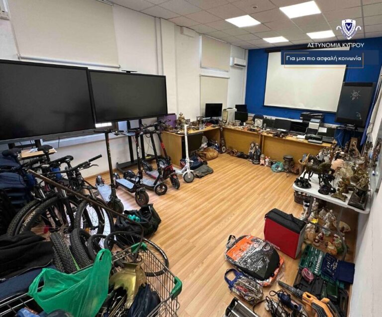 Ακολούθησε έρευνα στην οικία του 39χρονου, όπου εντοπίστηκε και κατασχέθηκε μεγάλος αριθμός από πιστωτικές κάρτες, ποδήλατα, ηλεκτρικά πατίνια, ηλεκτρονικούς υπολογιστές, εργαλεία και άλλα αντικείμενα αξίας, τα οποία πιστεύεται ότι αποτελούν προϊόντα κλοπής.