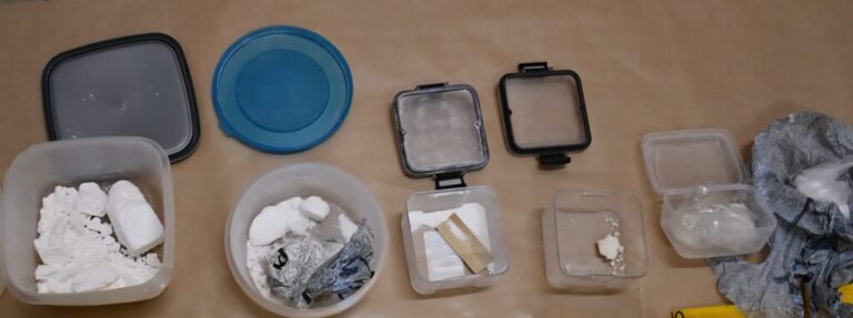 Κατά τη διάρκεια της έρευνας εντοπίστηκαν και κατασχέθηκαν έξι συσκευασίες που περιείχαν κοκαΐνη, συνολικού μεικτού βάρους 470 γραμμαρίων, δύο συσκευασίες που περιείχαν κάνναβη μεικτού βάρους 81 γραμμαρίων, δύο συσκευασίες που περιείχαν μεθαμφεταμίνη μεικτού βάρους 23 γραμμαρίων, καθώς και δύο ζυγαριές ακριβείας.