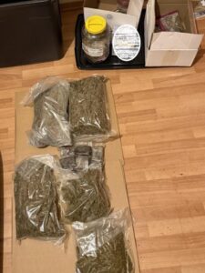 Ακολούθως, έγινε έρευνα με δικαστικό ένταλμα σε οικία την οποία ο ύποπτος χρησιμοποιεί ως αποθήκη, όπου εντοπίστηκαν και κατασχέθηκαν κάνναβη βάρους 6 κιλών και 342 γραμμαρίων, μεταμφεταμίνη βάρους 713 γραμμαρίων περίπου, κοκαΐνη βάρους 93 γραμμαρίων περίπου, ρητίνη κάνναβης βάρους 984 γραμμαρίων περίπου, 337 χειροποίητα τσιγάρα με κάνναβη, καθώς και μεγάλο χρηματικό ποσό.