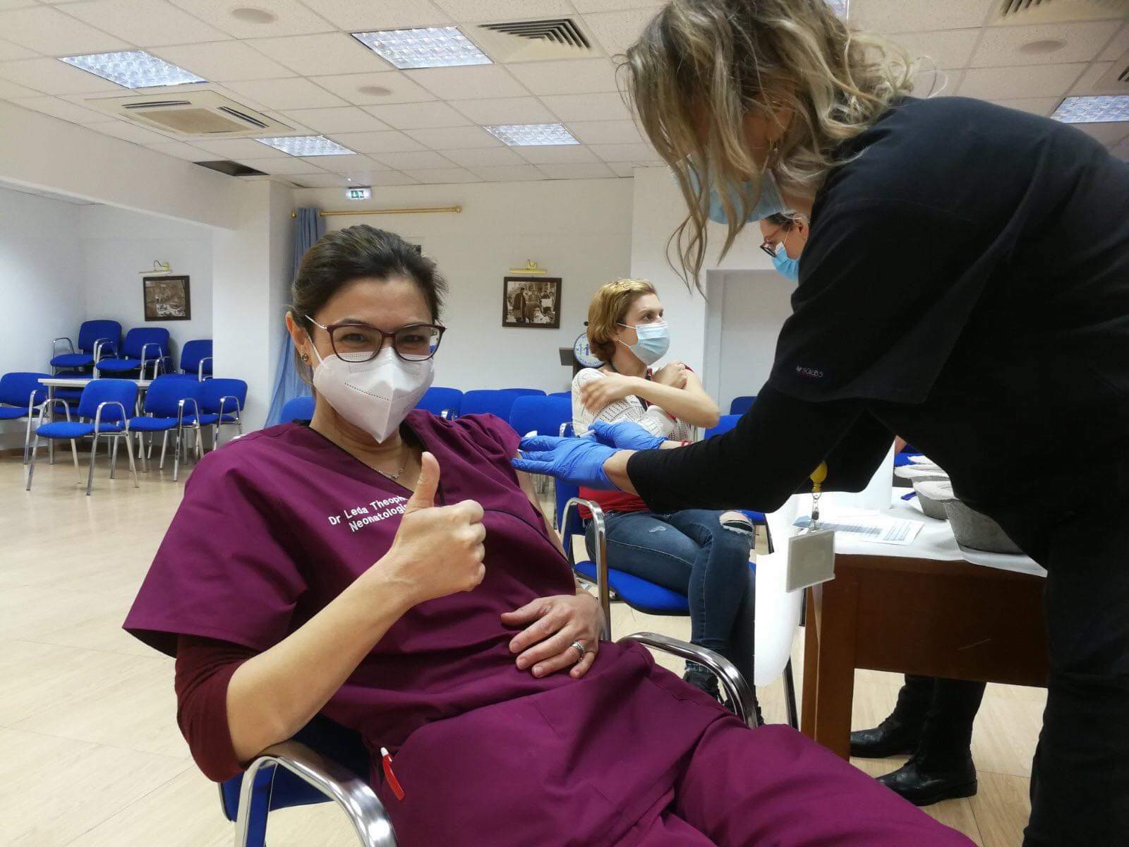 Γιατροί και νοσηλευτές που υπηρετούν στο Μακάρειο Νοσοκομείο Παίδων ήταν σήμερα στη λίστα των εμβολιασμών του Υπουργείου Υγείας κατά της πανδημίας του COVID-19. Η παιδίατρος-νεογνολόγος Αικατερινη Γρινιούκ, η παιδίατρος-νεογνολόγος Λήδα Θεοφίλου και οι νοσηλεύτριες Ναντια Φουρναρη και Αγγελική Ευστρατιου ήταν από τις πρώτες που έλαβαν το ελπιδοφόρο σκεύασμα και μάλιστα, με πλατιά χαμόγελα που διακρίνονται ακόμη και κάτω από τις προστατευτικές μάσκες που φορούν.