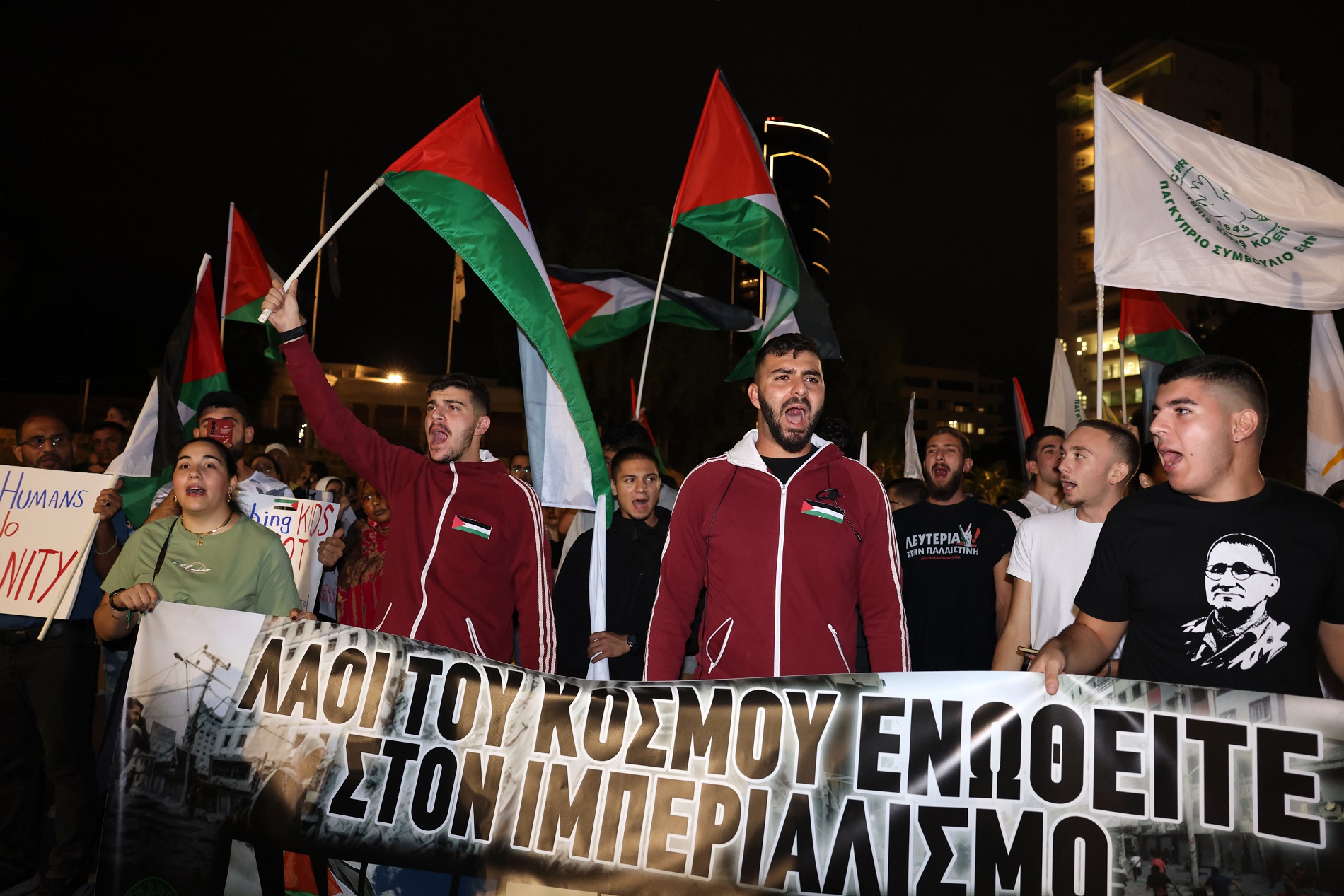 Σε εξέλιξη βρίσκεται από τις 18:30 η εκδήλωση διαμαρτυρίας που διοργανώνει το Παγκύπριο Συμβούλιο Ειρήνης υπέρ των παλαιστινίων, απαιτώντας τον «τερματισμό του πολέμου στη Γάζα».