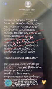 Το Τμήμα Τελωνείων έχει εντοπίσει περιπτώσεις κακόβουλων επικοινωνιών (κυρίως με μηνύματα SMS και πιθανόν emails) προς το κοινό, οι οποίες χρησιμοποιούν παράνομα το όνομα του Τμήματος Τελωνείων και με αφορμή δήθεν παράδοση δέματος, παρακολούθηση αποστολής, απλήρωτες χρεώσεις, κλπ., επιχειρούν να αποσπάσουν χρήματα ή/και προσωπικά δεδομένα.