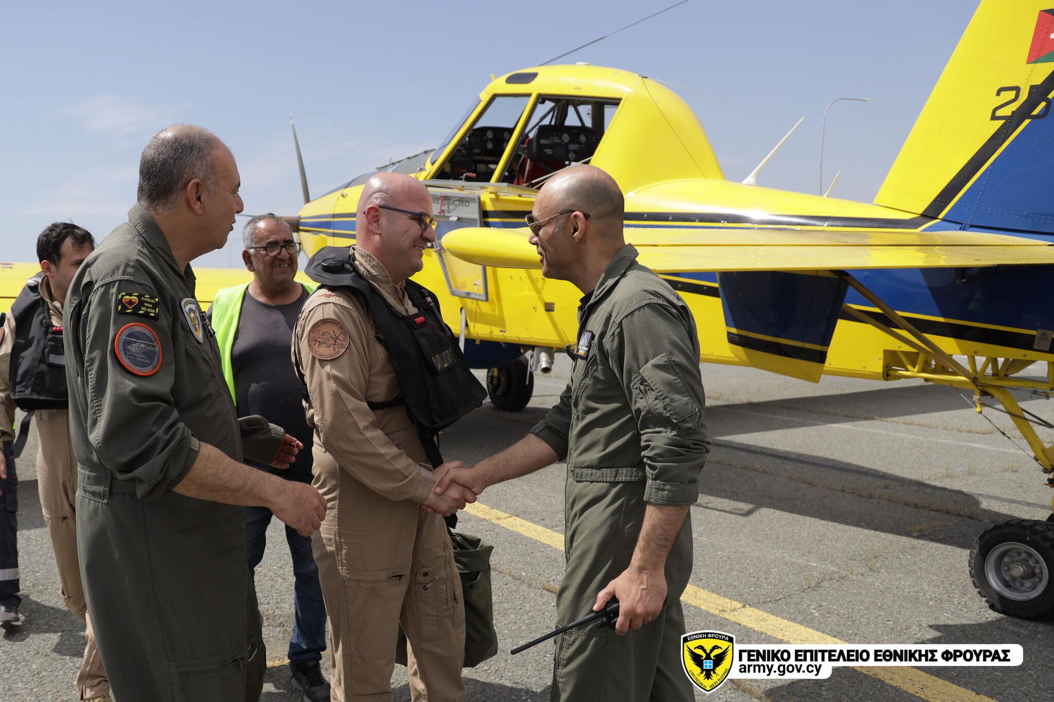 Ο Αρχηγός της Εθνικής Φρουράς Αντιστράτηγος Γεώργιος Τσιτσικώστας επισκέφθηκε το νεοαφιχθέν προσωπικό από την Ιορδανία, και αφού τους ευχαρίστησε για την παρουσία τους και τη συνδρομή τους στην αντιμετώπιση των δασικών πυρκαγιών, τους ευχήθηκε καλή παραμονή στην Κύπρο και κάθε επιτυχία στην εκπλήρωση της πολύ σοβαρής και δύσκολης αποστολής που τους έχει ανατεθεί. Παράλληλα, επανέλαβε ότι η παρουσία τους στην Κυπριακή Δημοκρατία αποδεικνύει την αναβαθμισμένη συνεργασία και την άριστη σχέση μεταξύ των Ενόπλων Δυνάμεων των δύο χωρών.