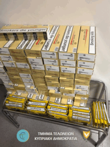 Σύμφωνα με ανακοίνωση του Τμήματος, στις 11/10/2025 λειτουργοί στο Αεροδρόμιο Λάρνακας, μετά από αξιολόγηση πληροφοριών, εντόπισαν 2 (δύο) Τουρκοκύπριους επιβάτες πριν την αναχώρηση τους σε διαφορετικές πτήσεις με προορισμό το Ηνωμένο Βασίλειο, με τις αποσκευές τους να περιέχουν μεγάλες ποσότητες καπνικών προϊόντων, τα οποία δεν έφεραν τη σήμανση για το βλαβερό του καπνίσματος στην ελληνική και τουρκική γλώσσα, αλλά ούτε και το χαρακτηριστικό ασφαλείας και το μοναδικό κωδικό ιχνηλασιμότητας, ενδείξεις ότι ήταν αδασμοφορολόγητα.