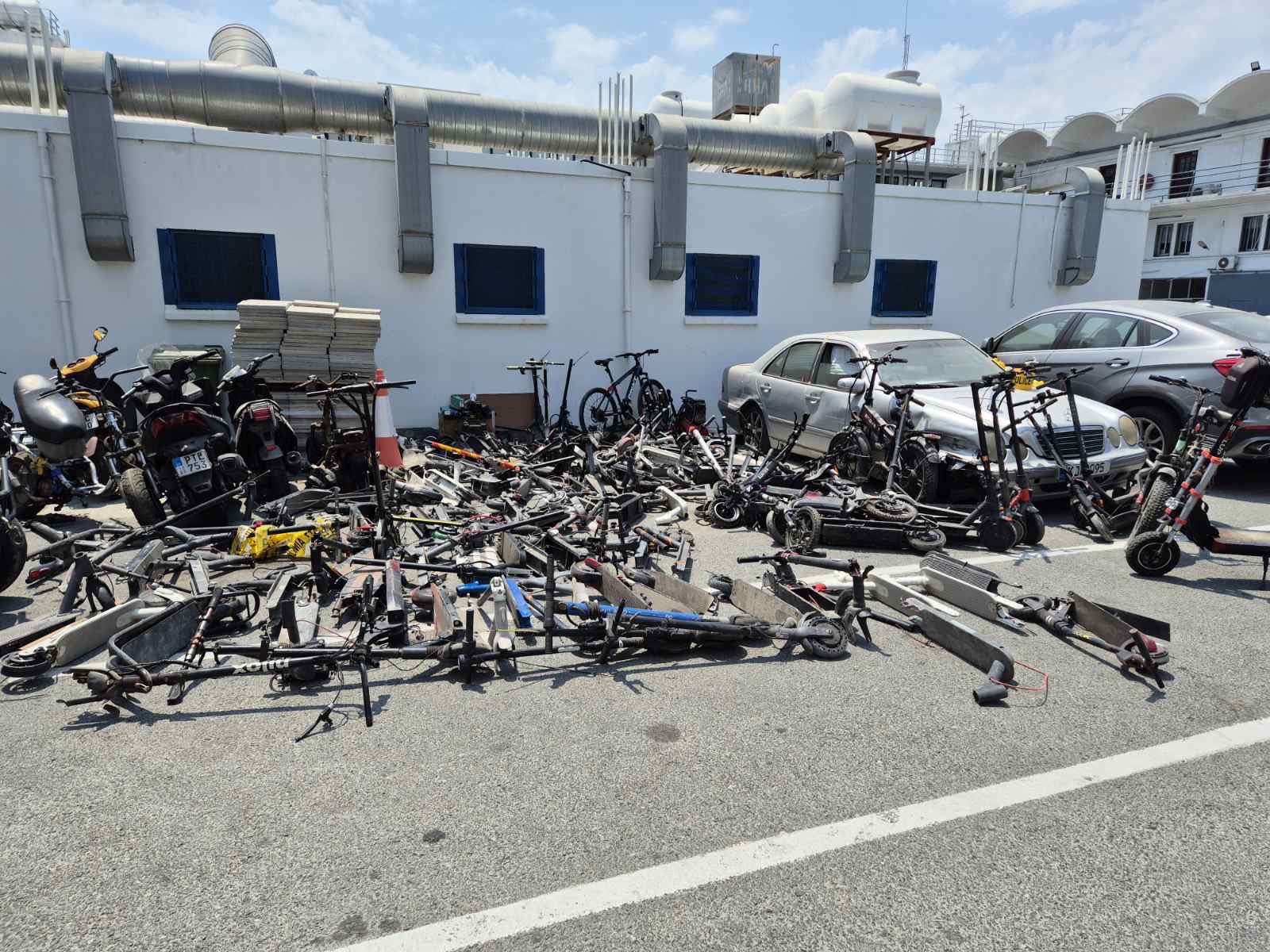 Από τα 110 ηλεκτρικά σκούτερ, που εντοπίστηκαν, τα 85 είναι σε μη λειτουργίσιμη κατάσταση. Το Τμήμα Μικροπαραβάσεων Λεμεσού διερευνά την υπόθεση.