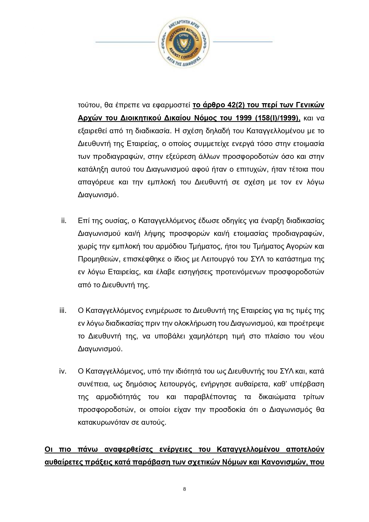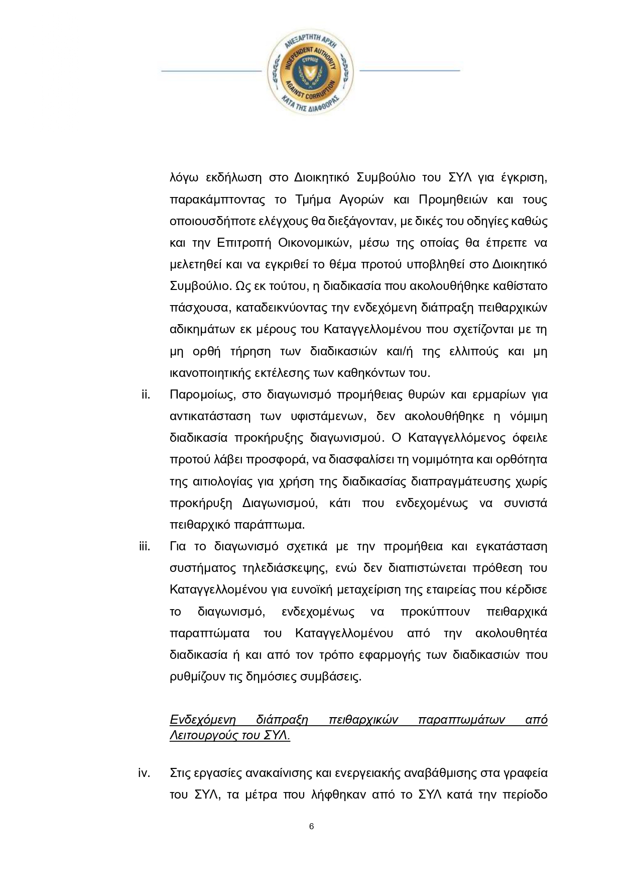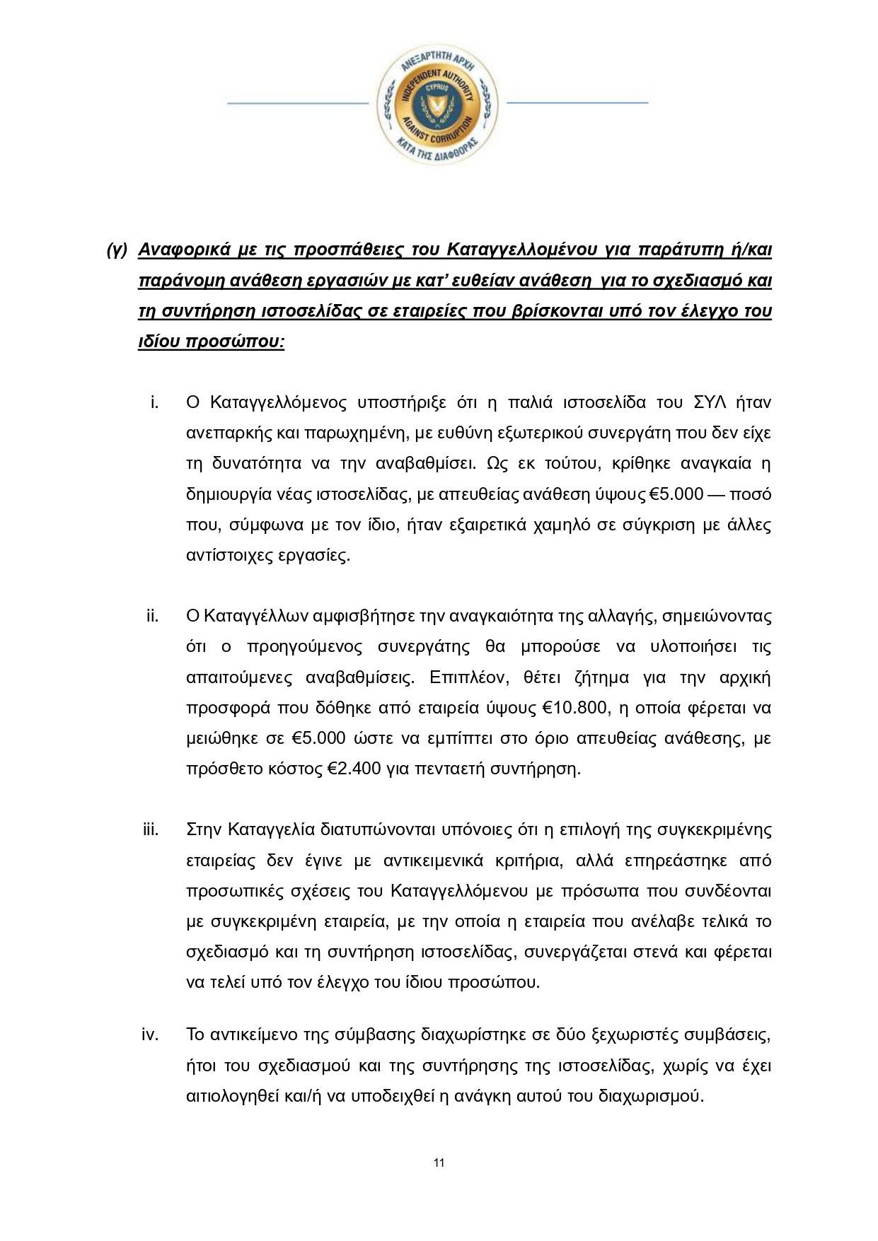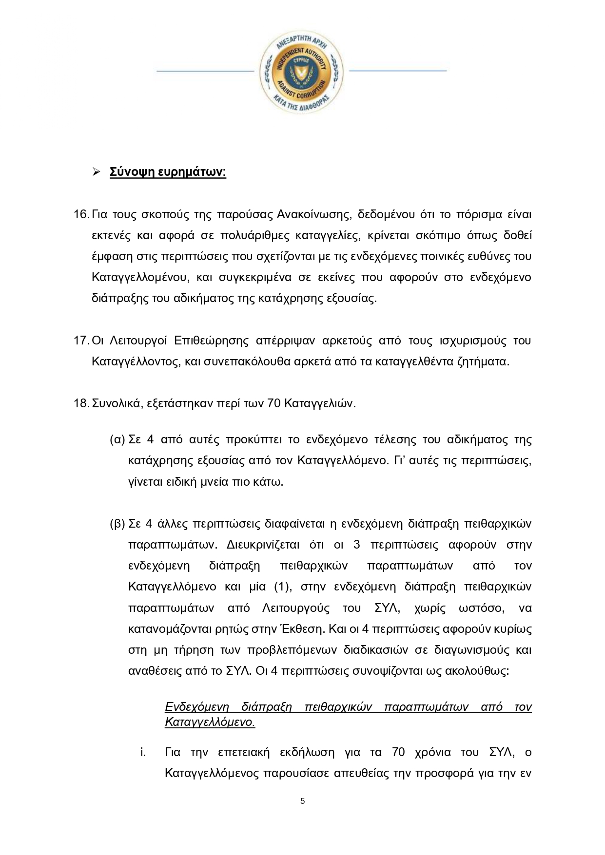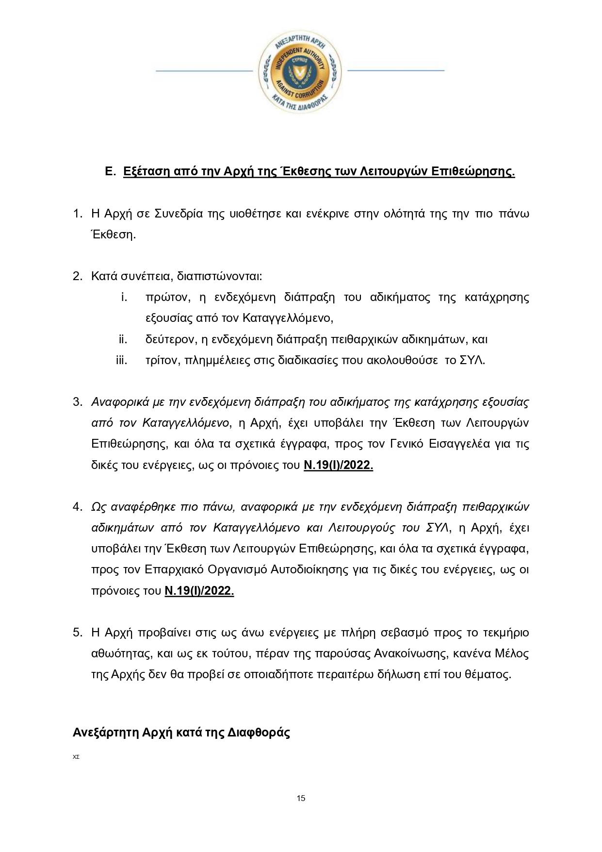 - Ενδεχόμενη διάπραξη του αδικήματος της κατάχρησης εξουσίας από τον Καταγγελλόμενο,