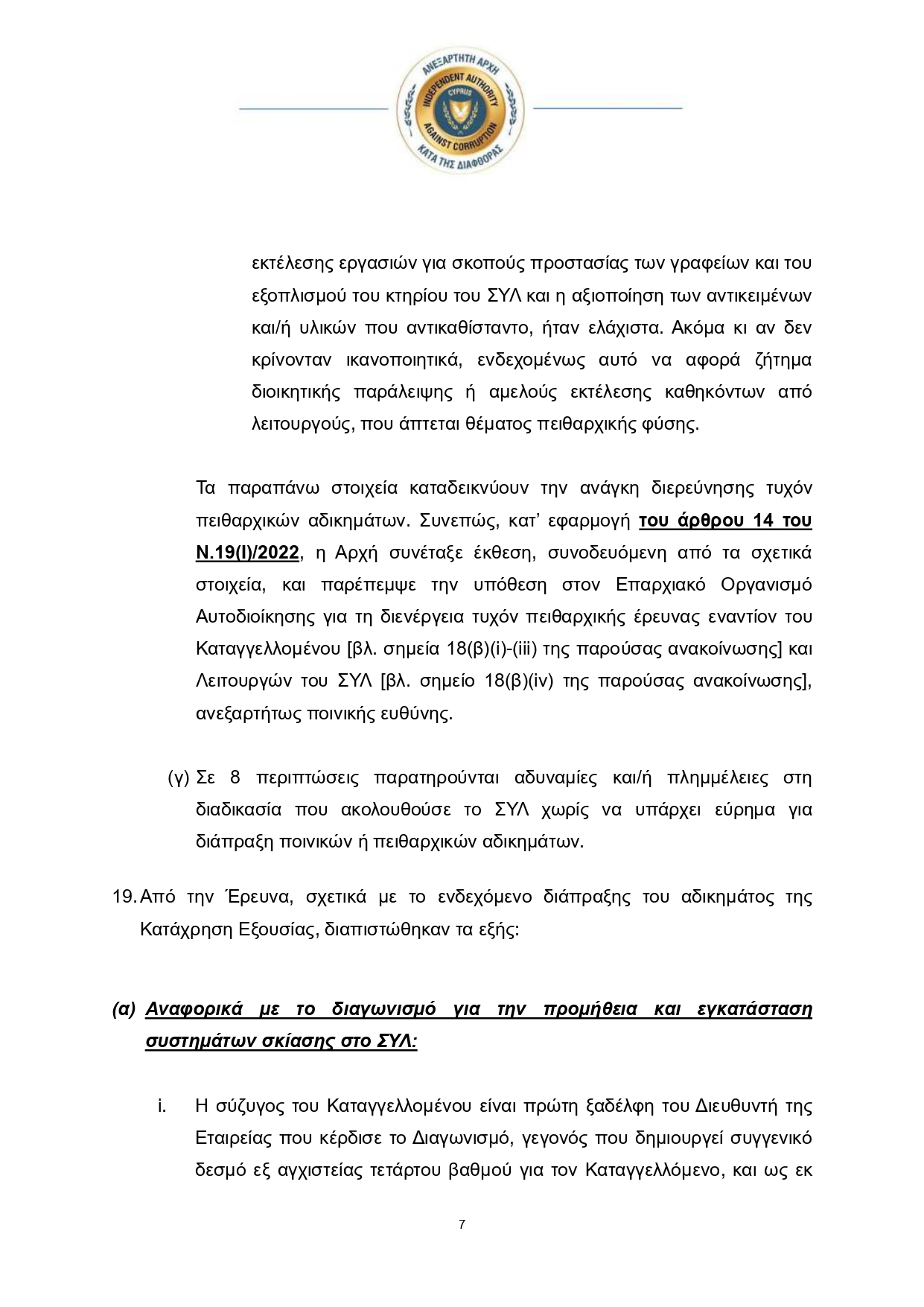 - Ενδεχόμενη διάπραξη πειθαρχικών αδικημάτων