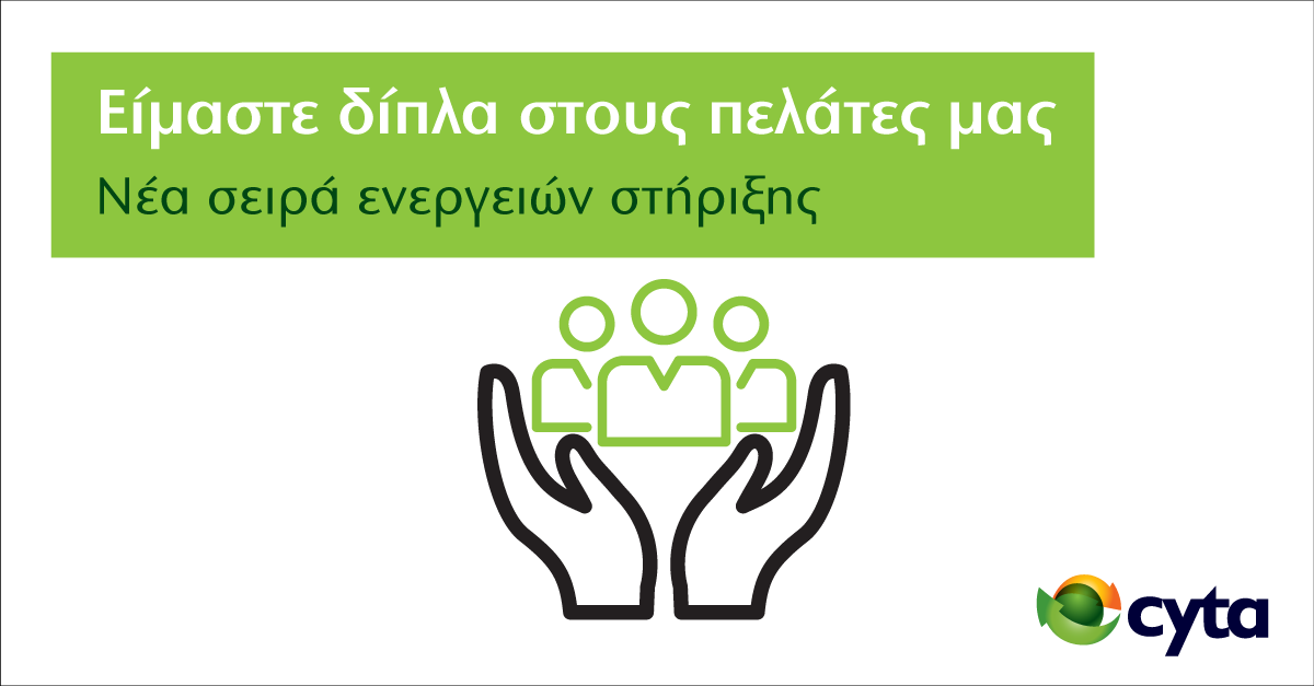 Με αυτή την τοποθέτηση, η Cyta, σε συνέχεια της δωρεάς ύψους €300.000 προς το Υπουργείο Υγείας, καθώς και των παροχών που έχουν ήδη δημοσιοποιηθεί, ανακοινώνει μια νέα σειρά ενεργειών στήριξης των πελατών της: