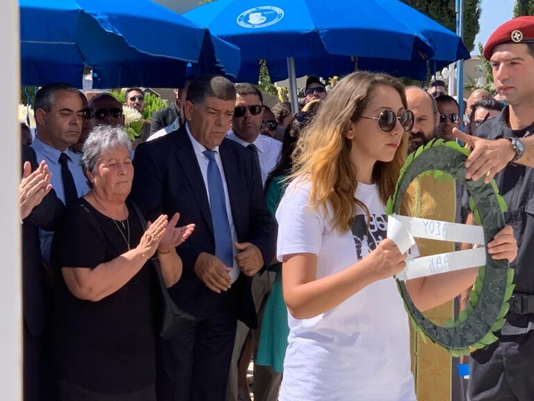 Πρωτοπόρα στις εκδηλώσεις, η κόρη του Τάσου Ισαάκ Αναστασία, το μικρό “Χελιδονάκι”, η οποία σήμερα είναι 23 ετών και κατέθεσε στεφάνι στον τάφο του πατέρα της, υπό το θερμό χειροκρότημα των παρευρισκομένων.
