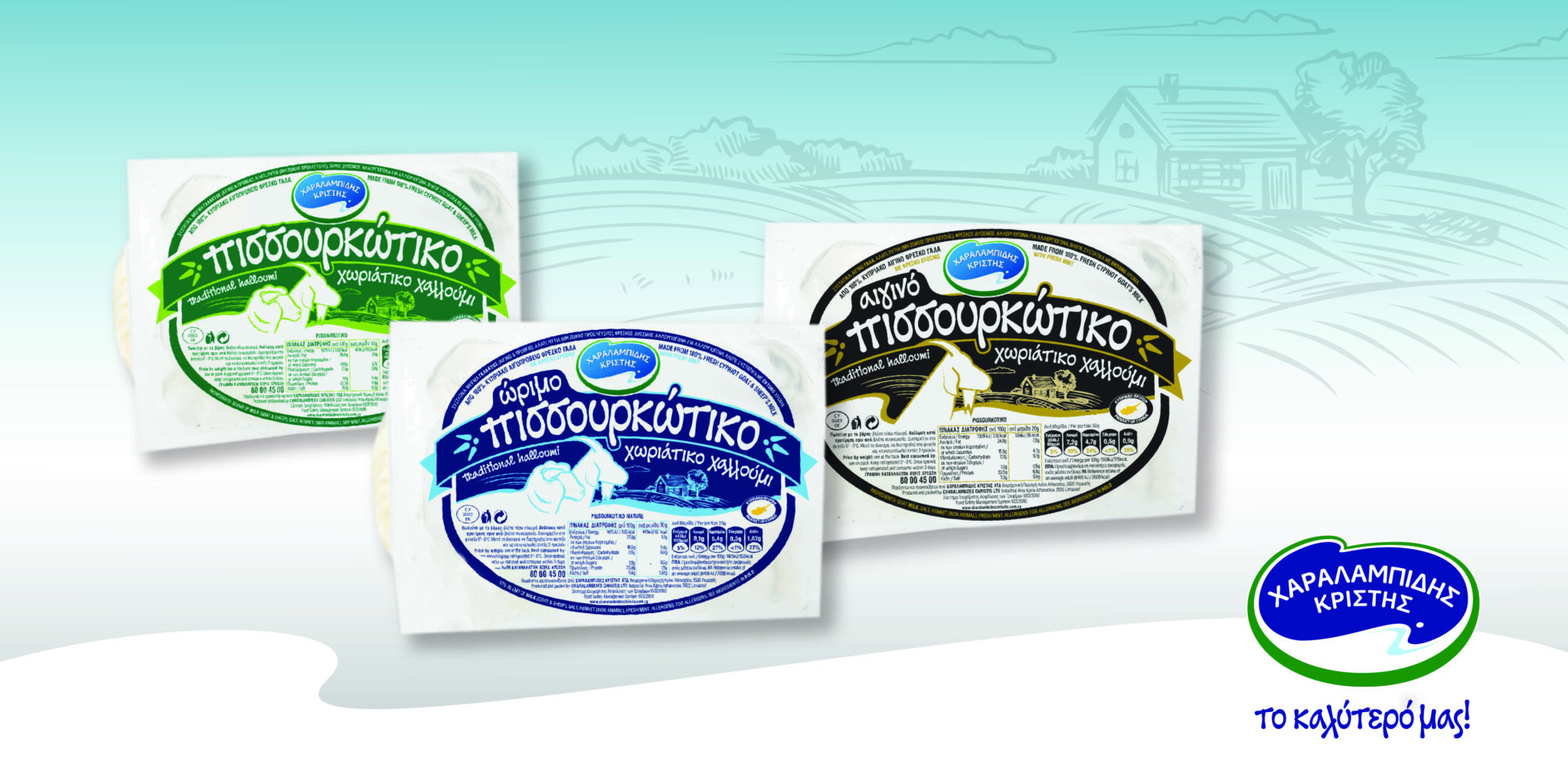 Η Χαραλαμπίδης Κρίστης δημιουργεί οικογένεια για το Πισσουρκώτικο χαλλούμι με νέα εμφάνιση. Η Χαραλαμπίδης Κρίστης, πιστή στην υλοποίηση των στρατηγικών της στόχων για επέκταση των προϊόντων της, λανσάρει στην κυπριακή αγορά τα δύο νέα μέλη της οικογένειας Πισσουρκώτικο χαλλούμι: Το Ώριμο και το Αιγινό Πισσουρκώτικο χαλλούμι.Η Χαραλαμπίδης Κρίστης, ανταποκρινόμενη στο αγκάλιασμα με το οποίο υποδέχτηκε η αγορά το Πισσουρκώτικο παραδοσιακό χαλλούμι, εμπλούτισε τώρα τη γκάμα των τυροκομικών προϊόντων της, για να ικανοποιήσει ακόμα περισσότερους λάτρεις αυτού το μοναδικού Κυπριακού προϊόντος.Το Ώριμο Πισσουρκώτικο είναι φτιαγμένο από 100% φρέσκο αιγοπρόβειο γάλα και φρέσκο δυόσμο, ενώ το Αιγινό Πισσουρκώτικο, από 100% φρέσκο αιγινό γάλα και φρέσκο δυόσμο. Το αιγινό γάλα είναι πολύ εύπεπτο, με μικρή περιεκτικότητα σε λακτόζη, ενώ βοηθά στην εξουδετέρωση του γαστρικού έλκους και μεταβολίζεται εύκολα και γρήγορα.