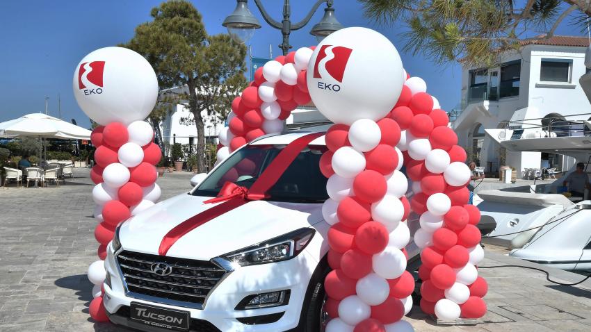 Χαμόγελα για την πρώτη υπερτυχερή του μεγάλου διαγωνισμού “EKO Smile App”, που απέκτησε ένα ολοκαίνουργιο επιβατικό όχημα HYUNDAI TUCSON, αξίας €20,900.  Η μεγάλη νικήτρια, Τασούλα Νικολάου, παρέλαβε το πολυτελές αυτοκίνητο κατά τη διάρκεια εκδήλωσης που πραγματοποιήθηκε την Παρασκευή 5 Ιουνίου στη Μαρίνα Λεμεσού, παρουσία του Διευθύνοντα Συμβούλου της ΕΚΟ Κύπρου κ. Γιώργου Γρηγορά και εκπροσώπων των ΜΜΕ.